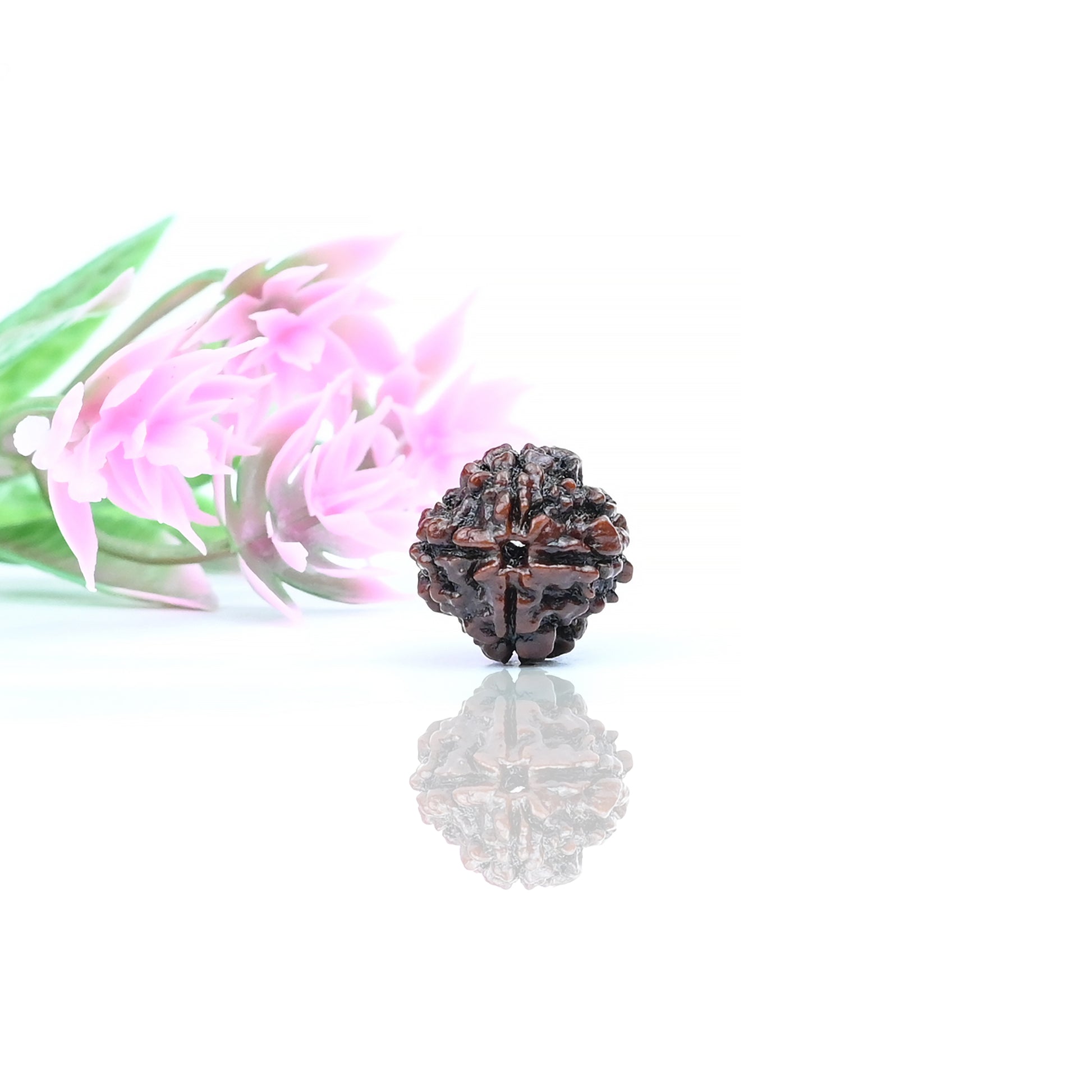 The 4 Mukhi Rudraksha is a sacred bead symbolizing Lord Brahma, the creator, and is known for its spiritual and intellectual benefits.