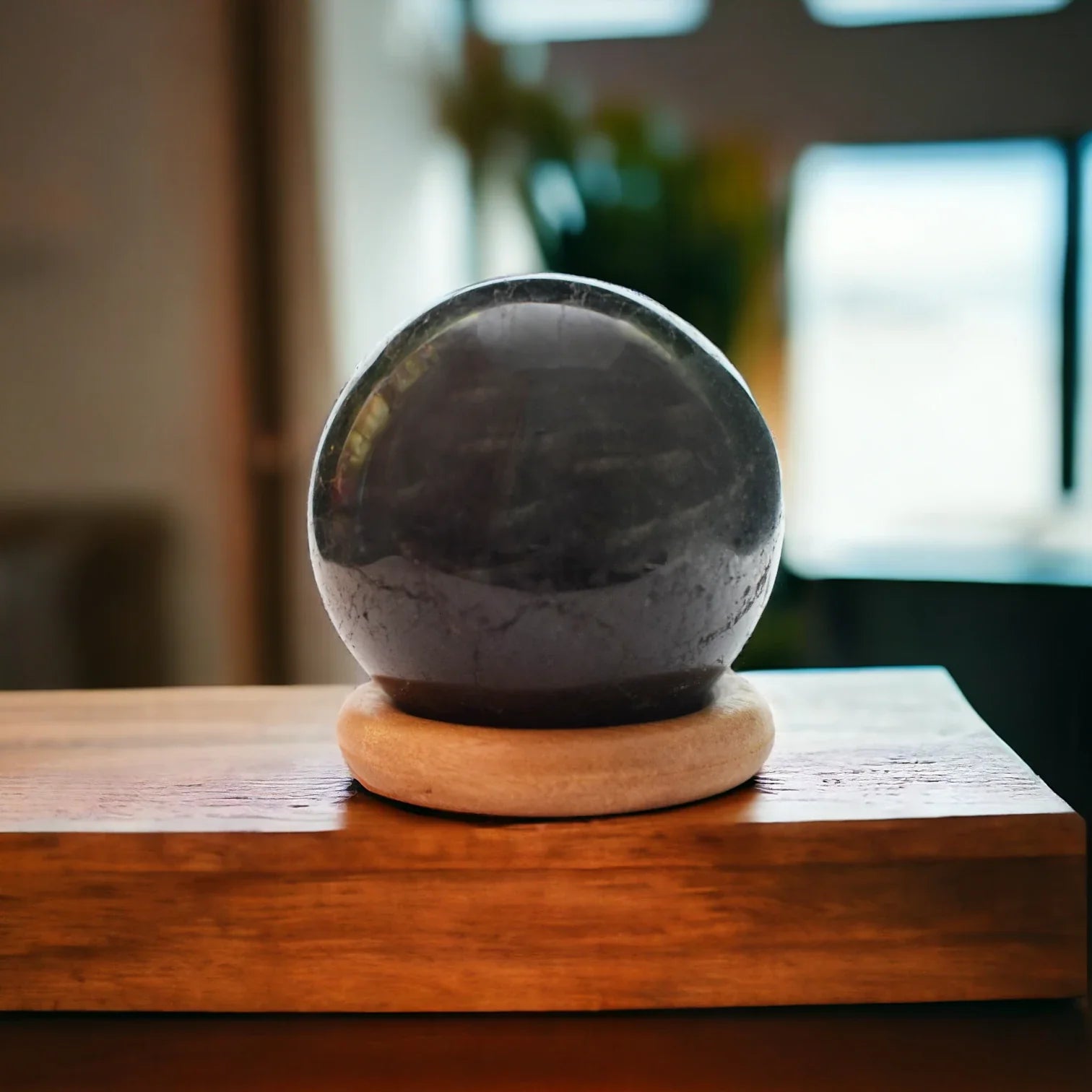 Black Tourmaline Crystal Sphere Ball - Rekhi / Healing / Energy . (215 - 225) gm