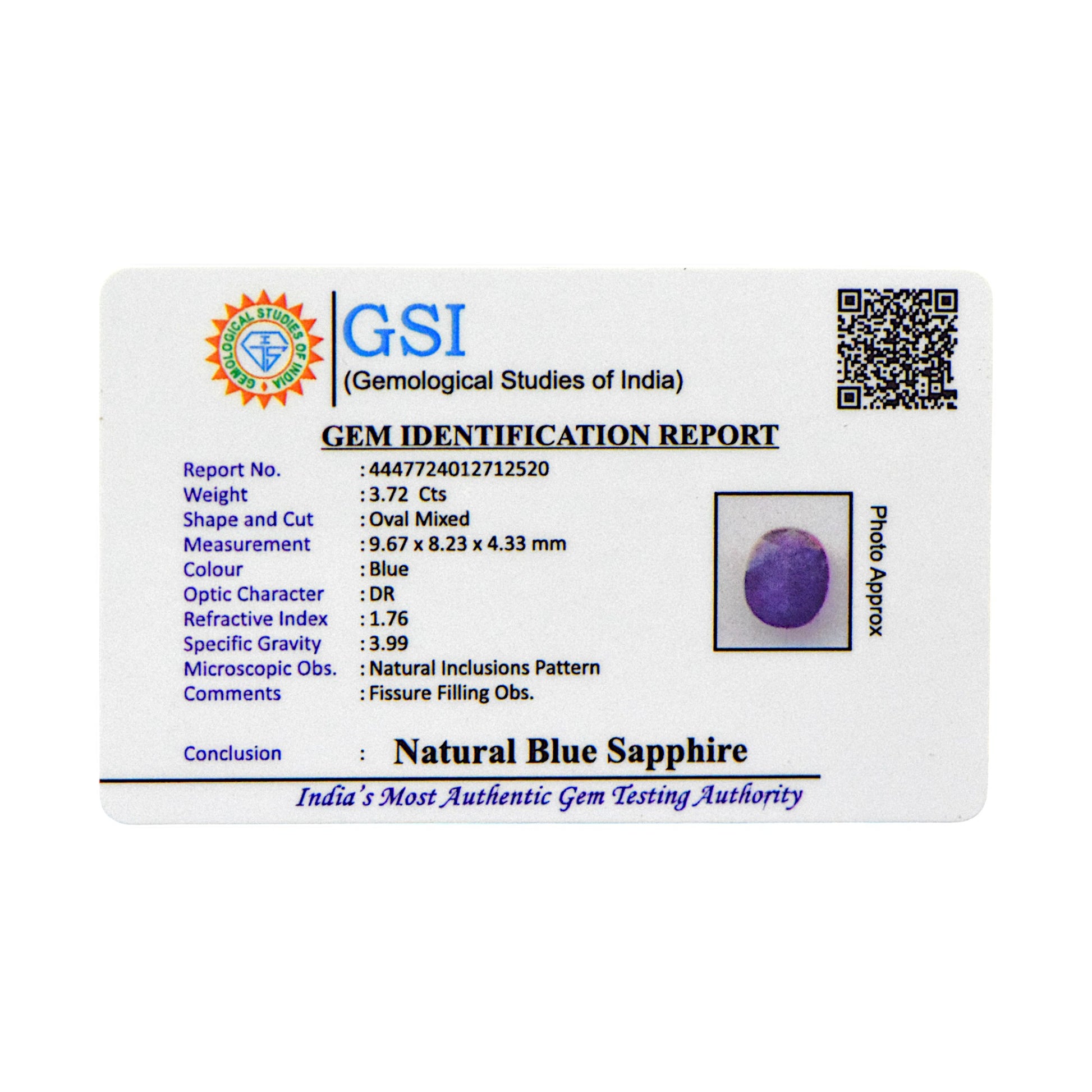 Blue Sapphire - 3.72 Carat