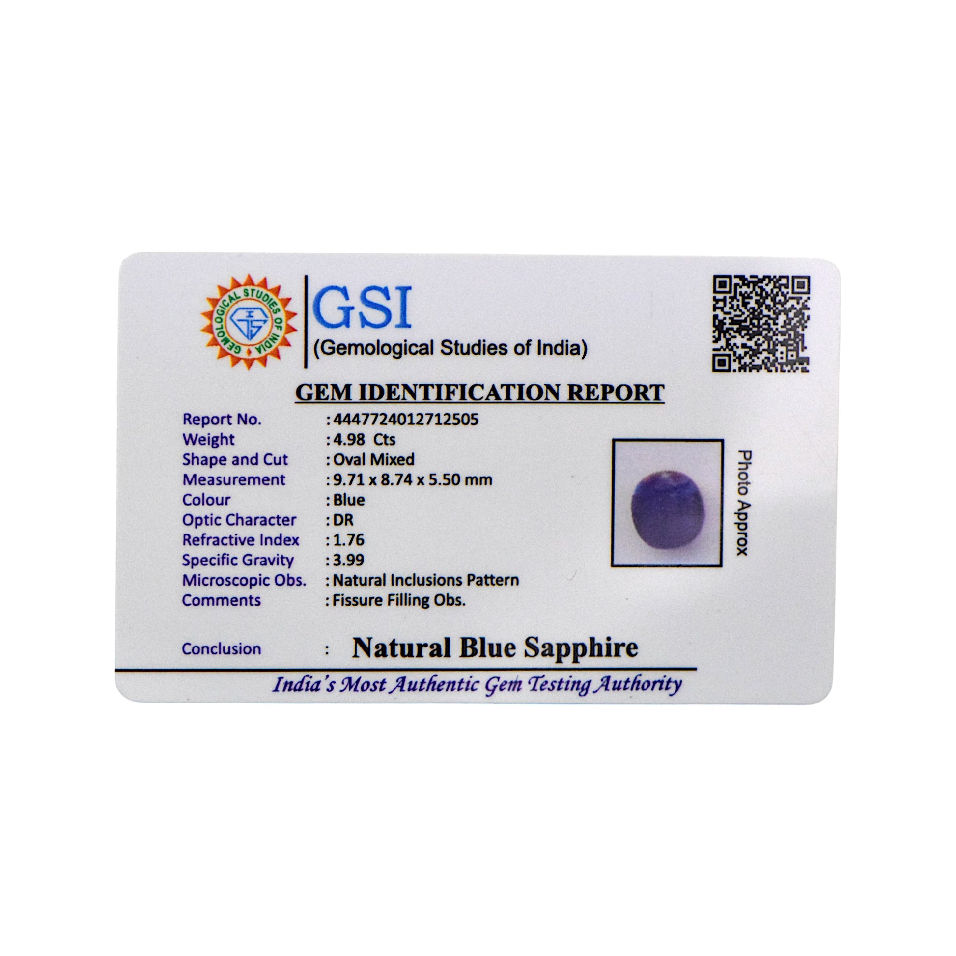 Certification: GSI Certified for Authenticity