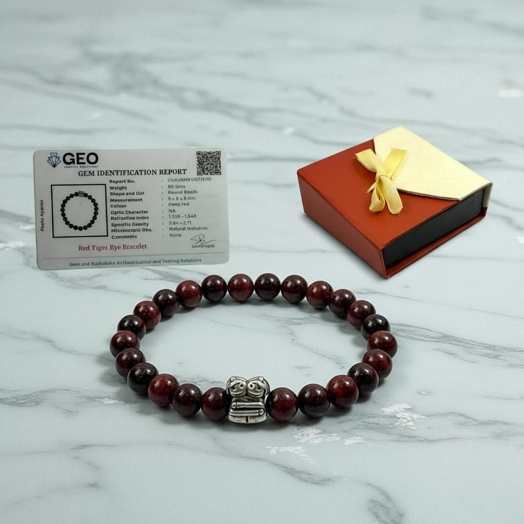 Boost courage, motivation, and focus with our Red Tiger Eye Bracelet. This striking stone with its deep reddish sheen is a powerful energizer, grounding and protecting its wearer.