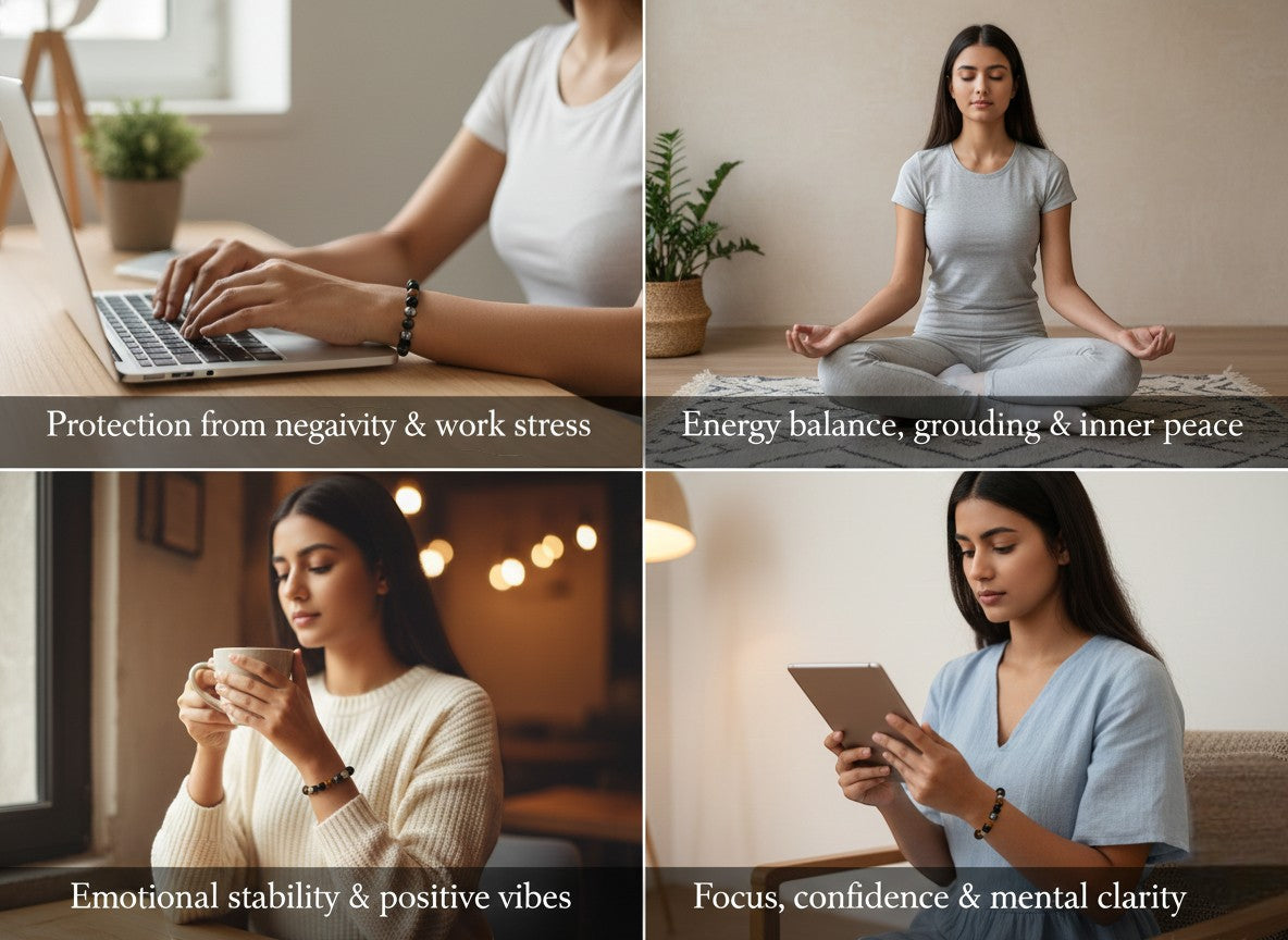 Together, these stones create a strong energetic shield that helps guard against negativity, balance emotions, and bring confidence, stability, and inner strength.