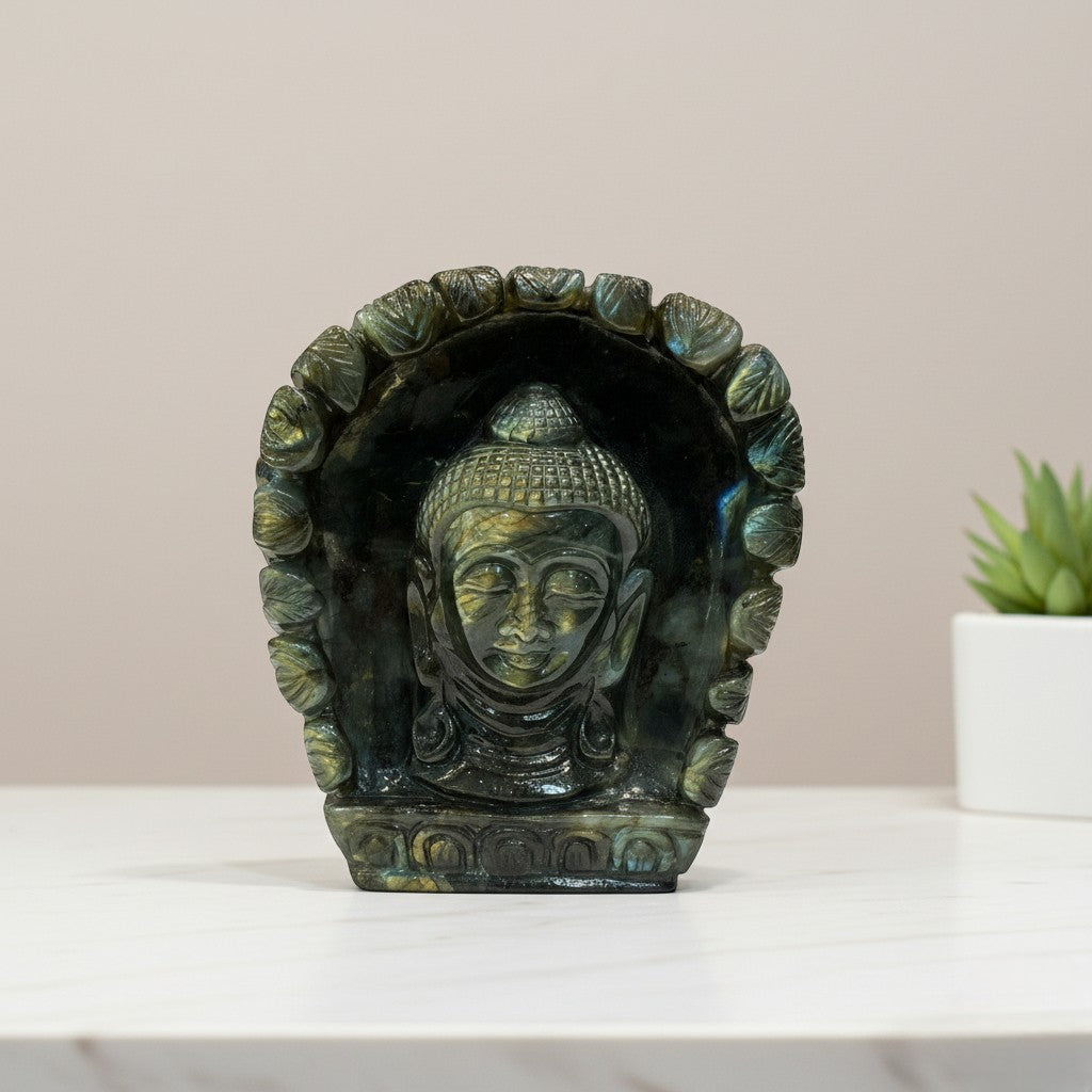 Bring grounding, protection, and spiritual energy into your space with this Labradorite Buddha. Hand-carved from natural Labradorite, a stone celebrated for intuition, transformation, and clarity, this Buddha radiates serenity and balance — ideal for homes, meditation spaces, offices, or as a meaningful gift.