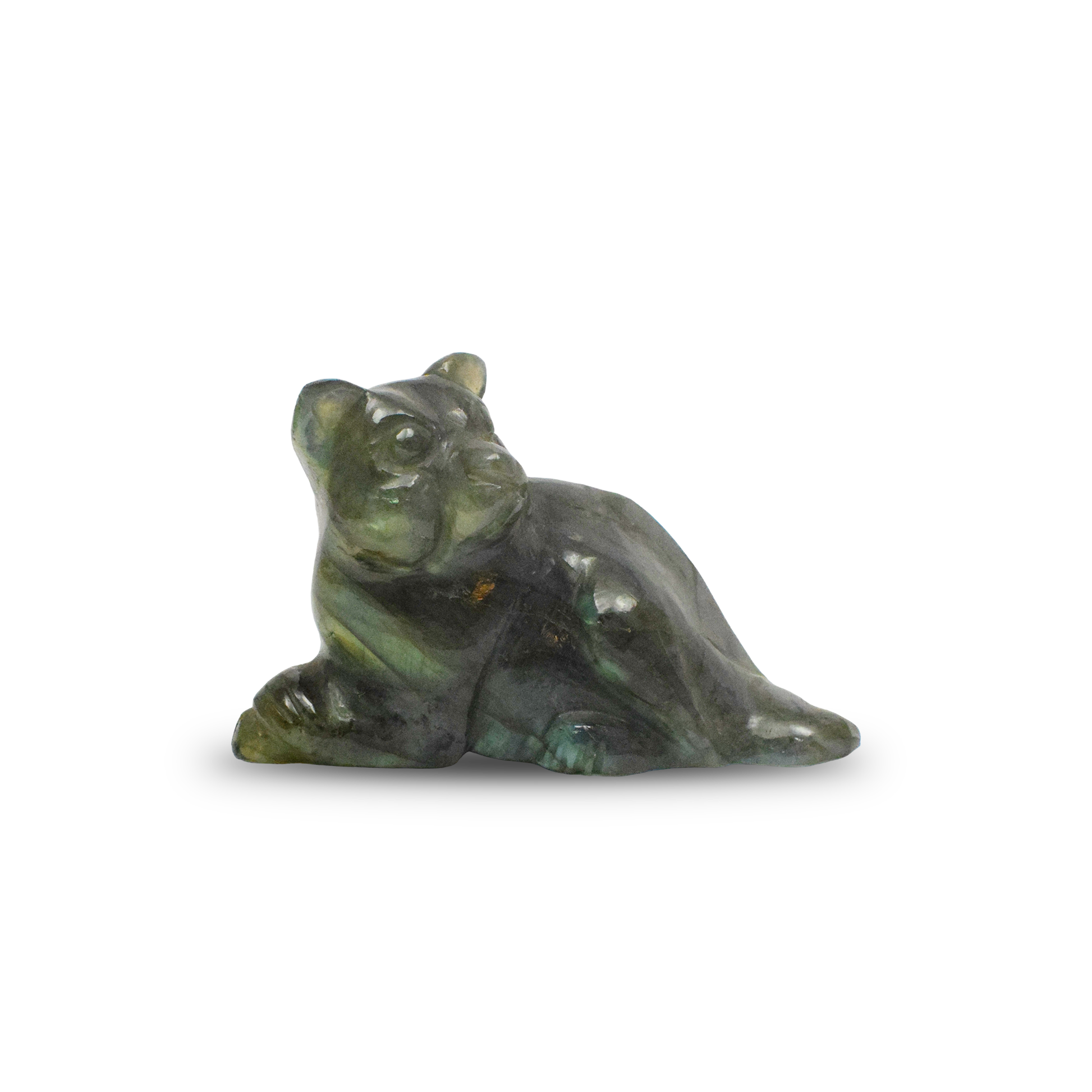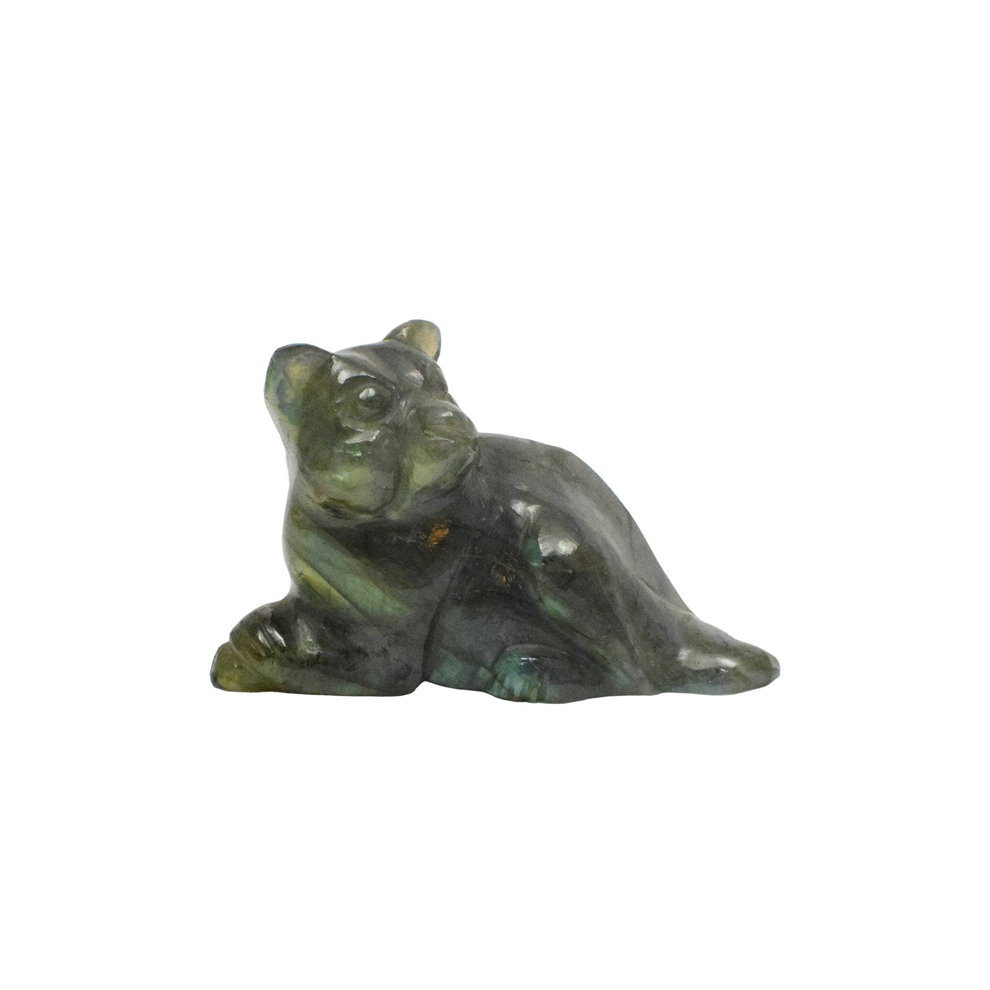 Labradorite Cat - 9.53 cm Sculpture Hand Carved, 225 Gram