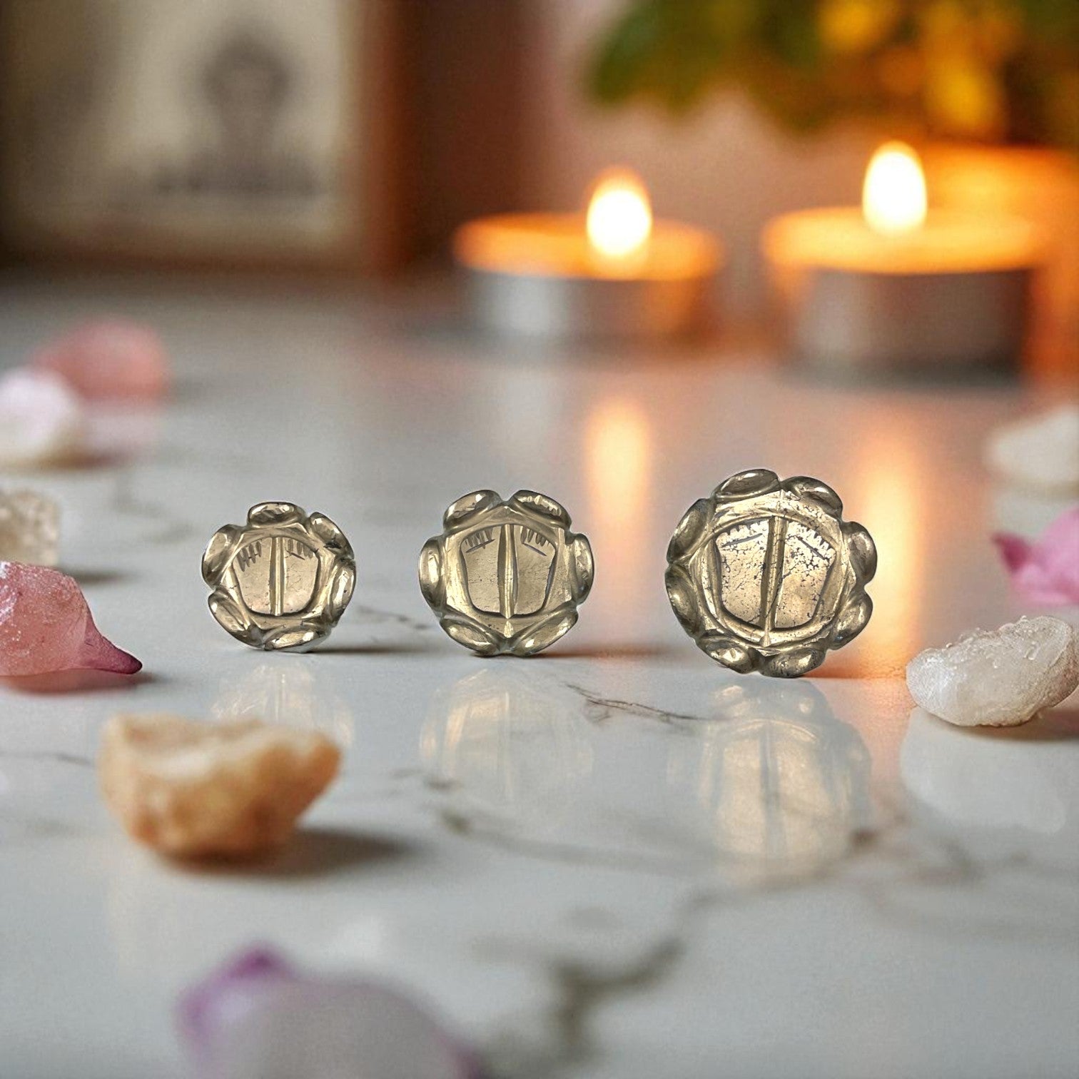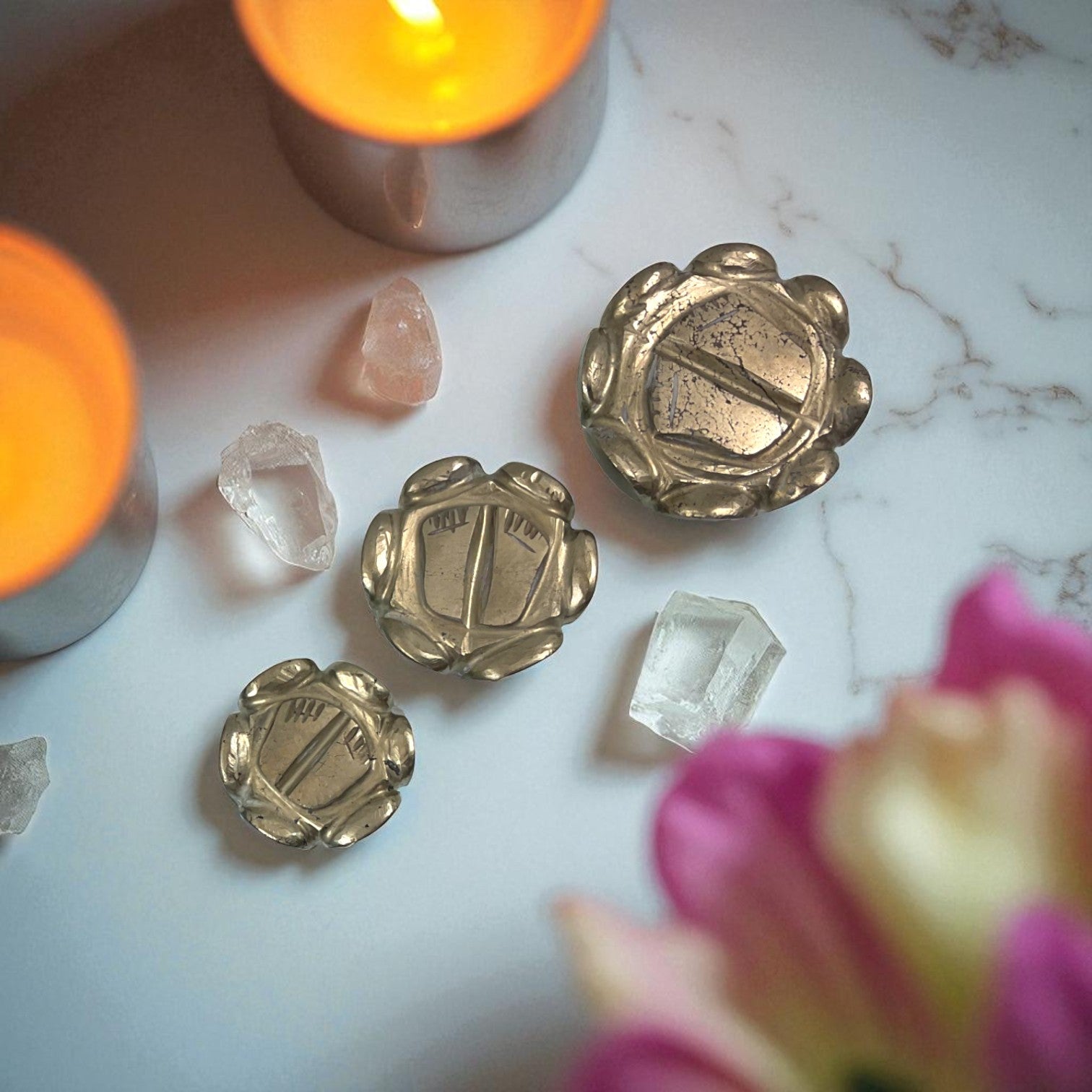 Invite prosperity, good fortune, and positive energy into your home with these beautifully hand-carved Pyrite Laxmi Foot Prints. Representing the divine footsteps of Goddess Laxmi—the goddess of wealth, abundance, and prosperity—these foot prints made from natural Pyrite radiate a powerful, protective energy while attracting financial growth and success.