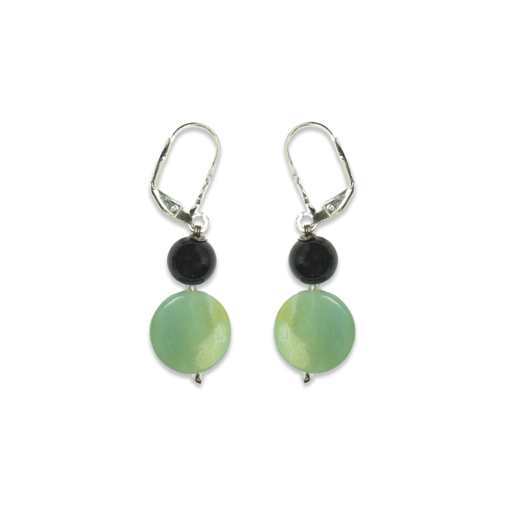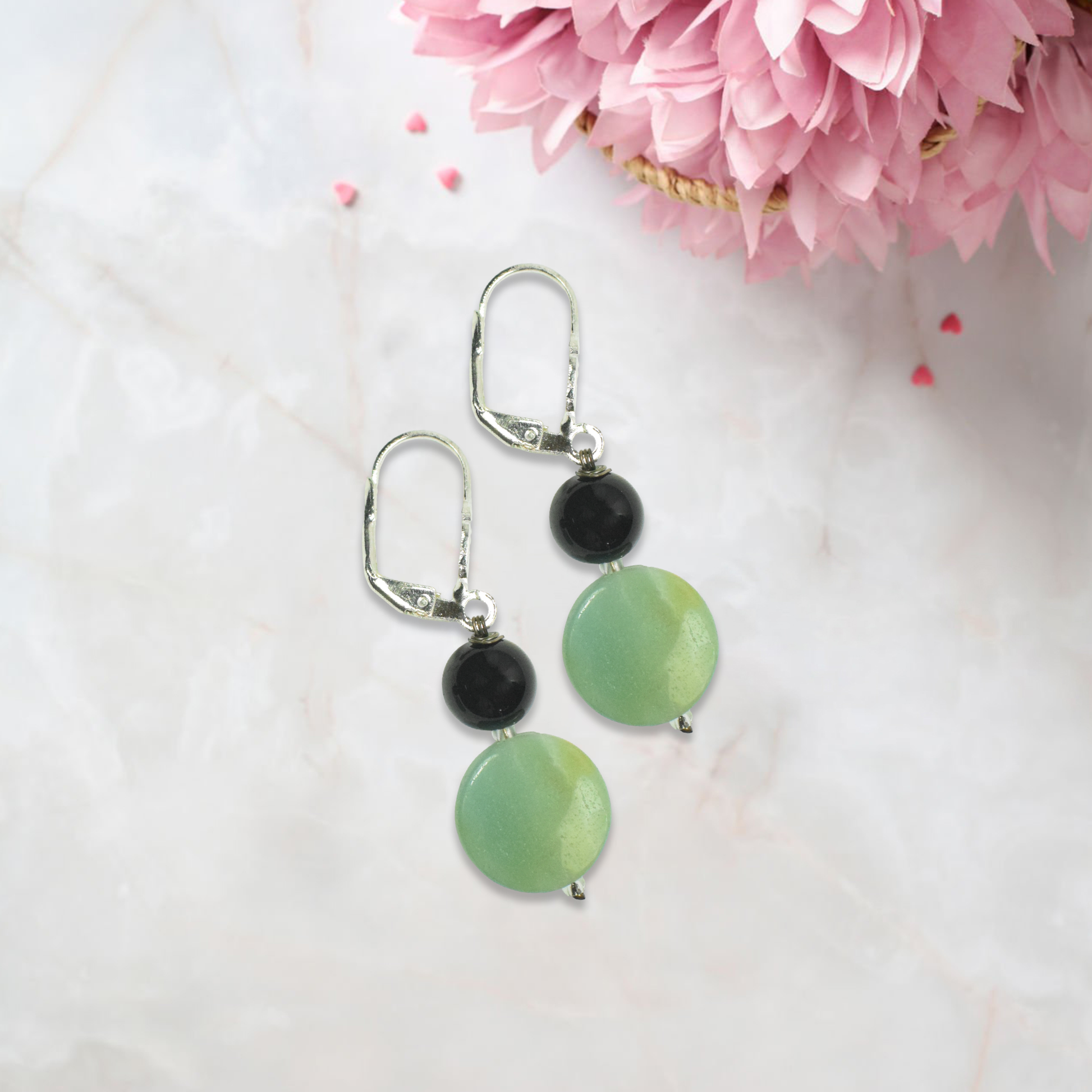 Green Aventurine & Black Obsidian Drop Dangle Earrings