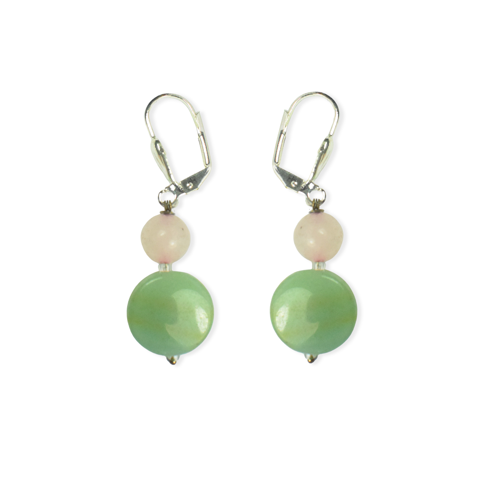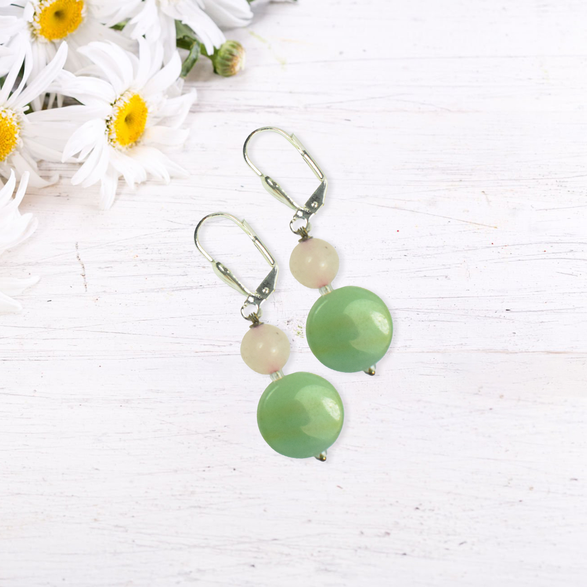 Rose Quartz & Green Aventurine Drop Dangle Earrings