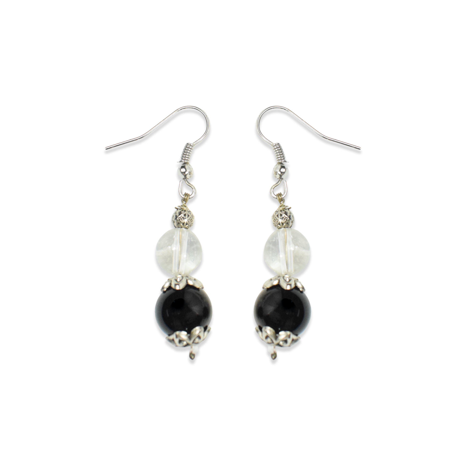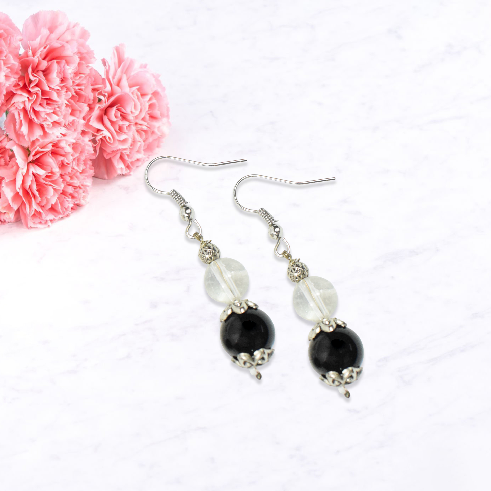 Whether youƒ??re seeking to enhance your jewelry collection with a piece that offers both aesthetic appeal and protective qualities, or youƒ??re looking for a thoughtful gift, these Spartik & Black Obsidian Drop Dangle Earrings are an excellent choice.