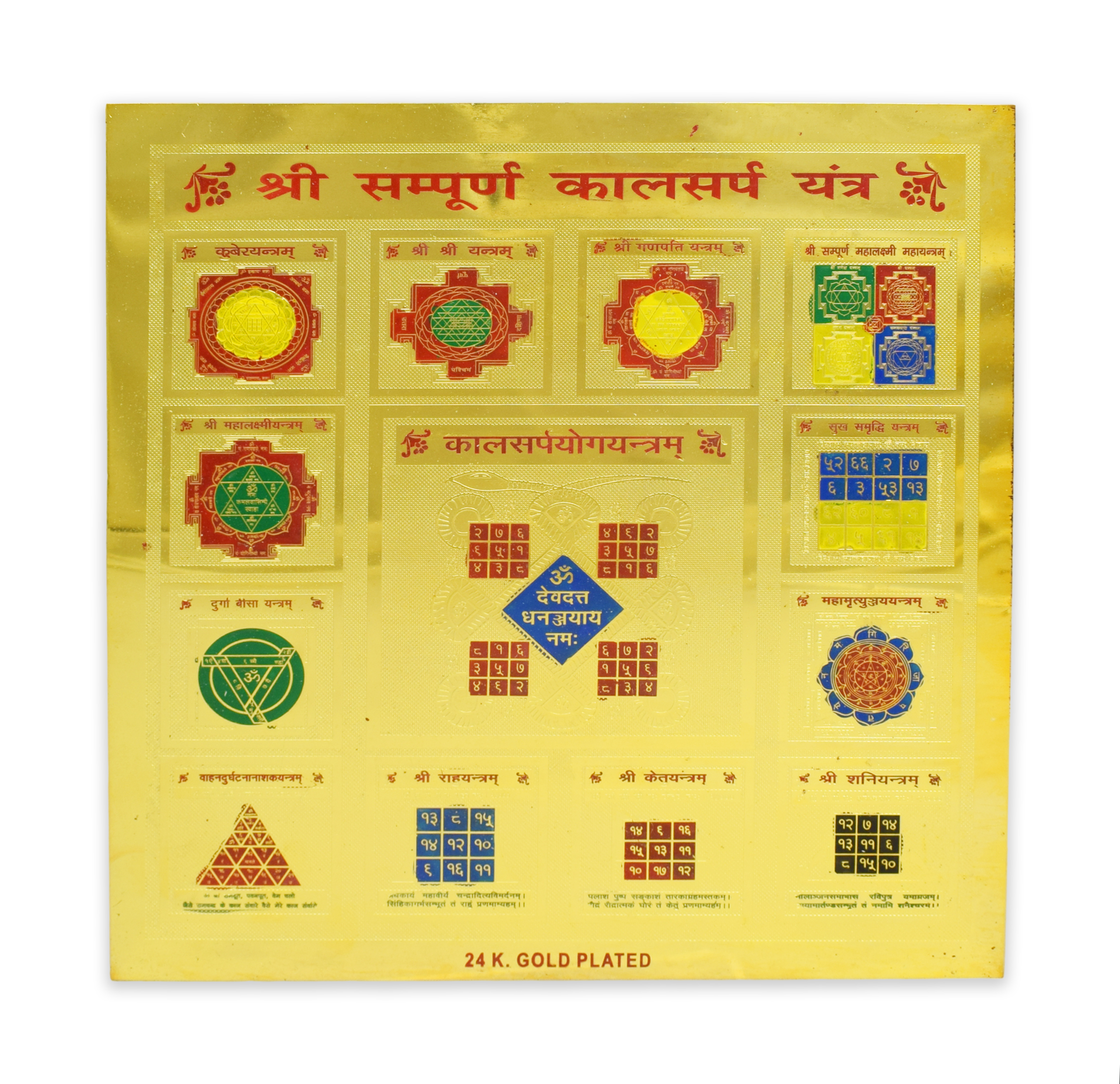Shree Sampoorn Kaalasarp Yantra Copper With 24K Gold Plating Yantra (19 X 19) Cm