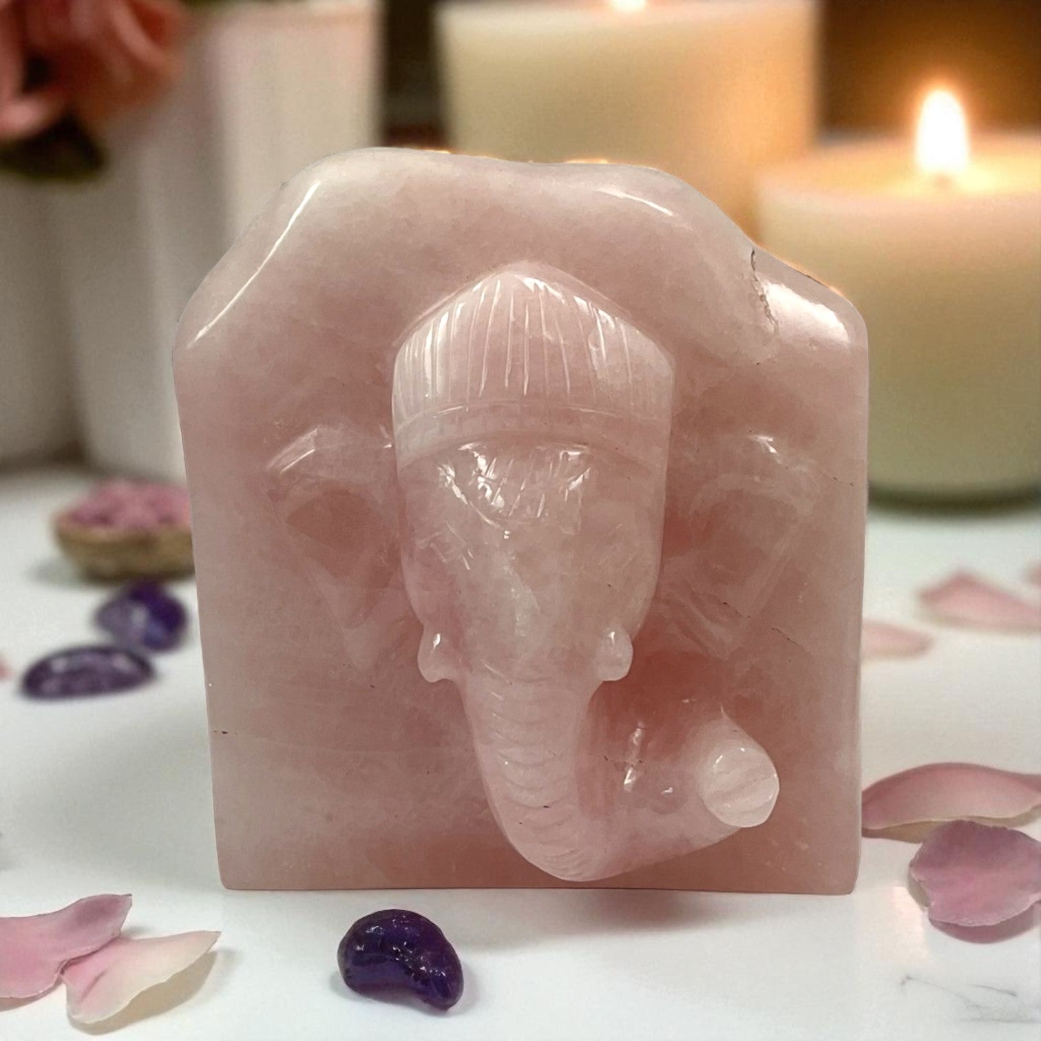 Rose Quartz Slab Ganesh Statue