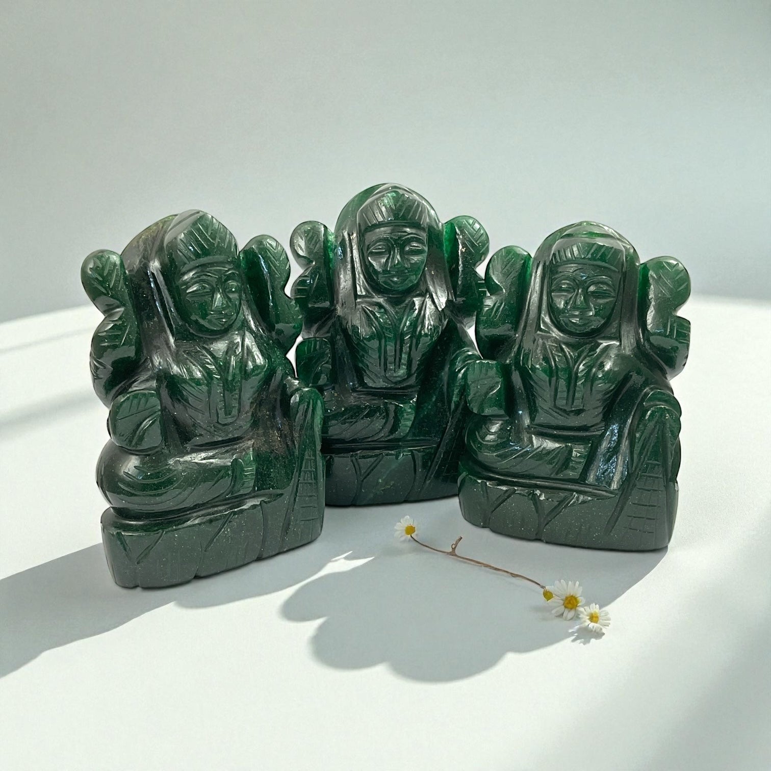Invite prosperity, abundance, and positive energy into your space with these beautifully hand-carved Green Aventurine Laxmi Idols. Crafted from natural Green Aventurine, known as the Stone of Good Luck, each idol radiates soothing green hues and enhances wealth, harmony, and spiritual blessings.