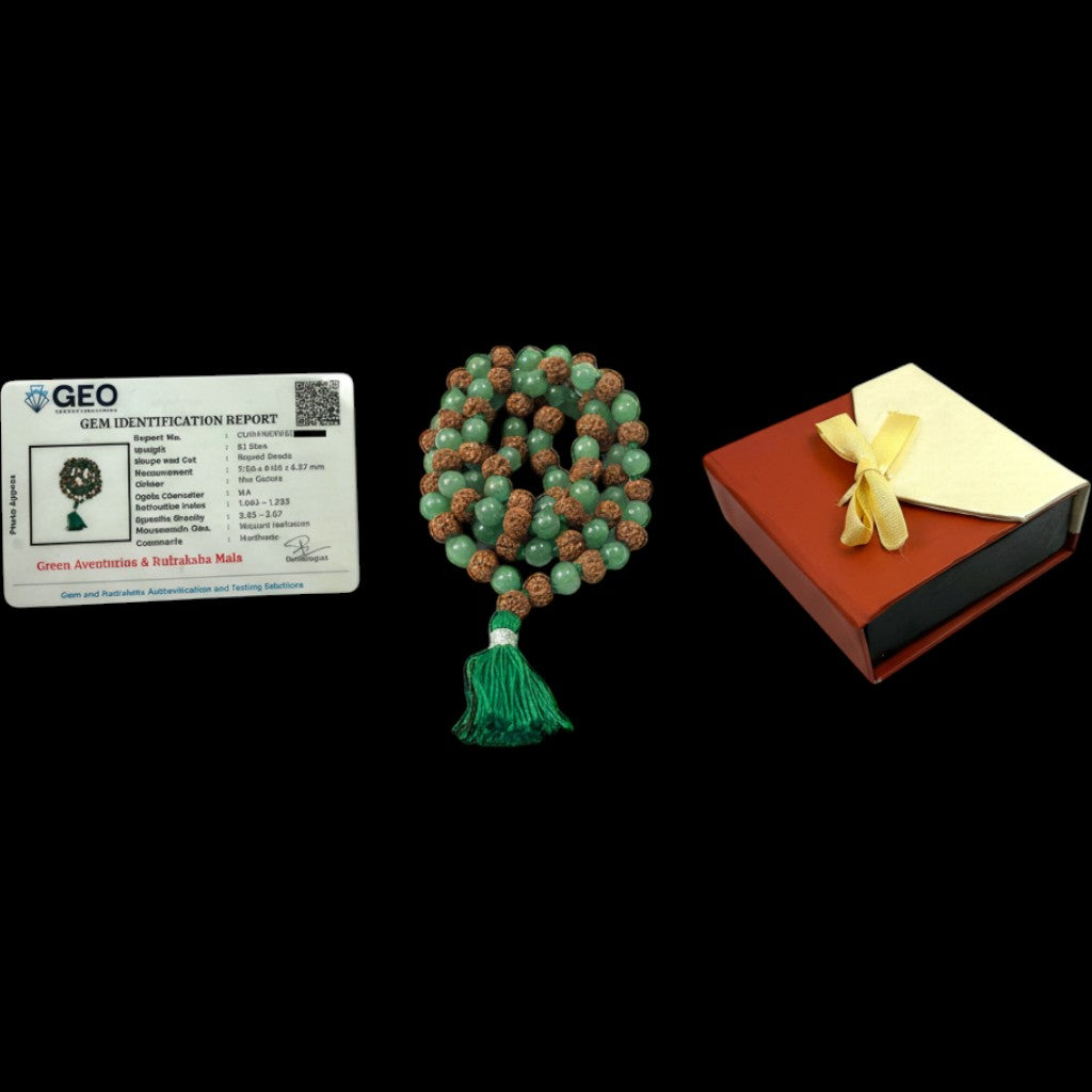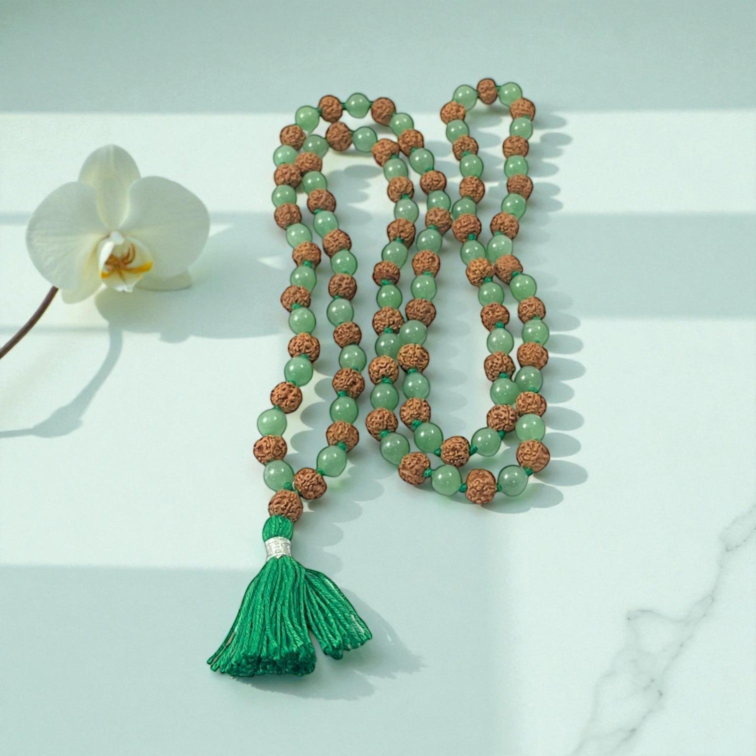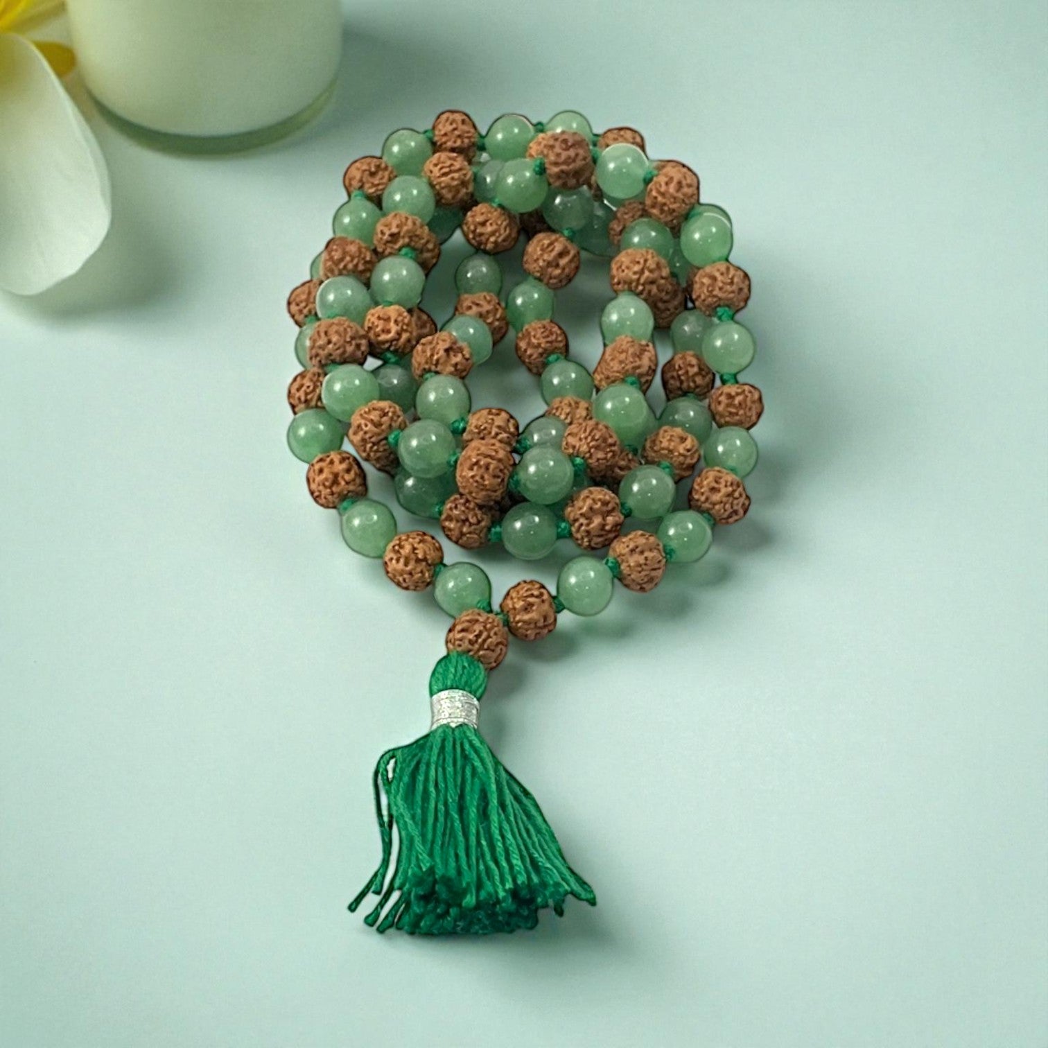 Green Aventurine & Rudraksha Mala (108 beads) 8 mm