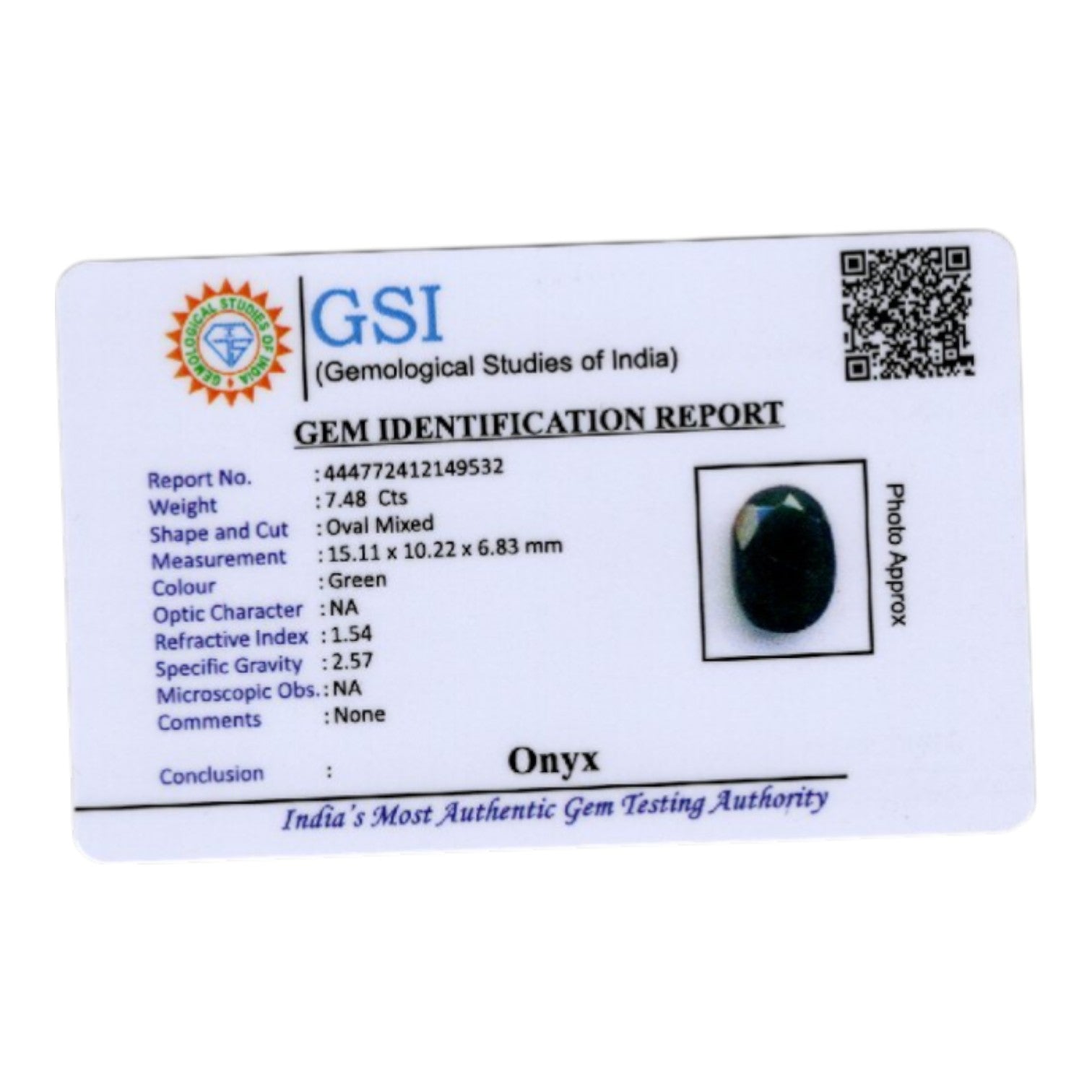 Certification: GSI Certified for Authenticity