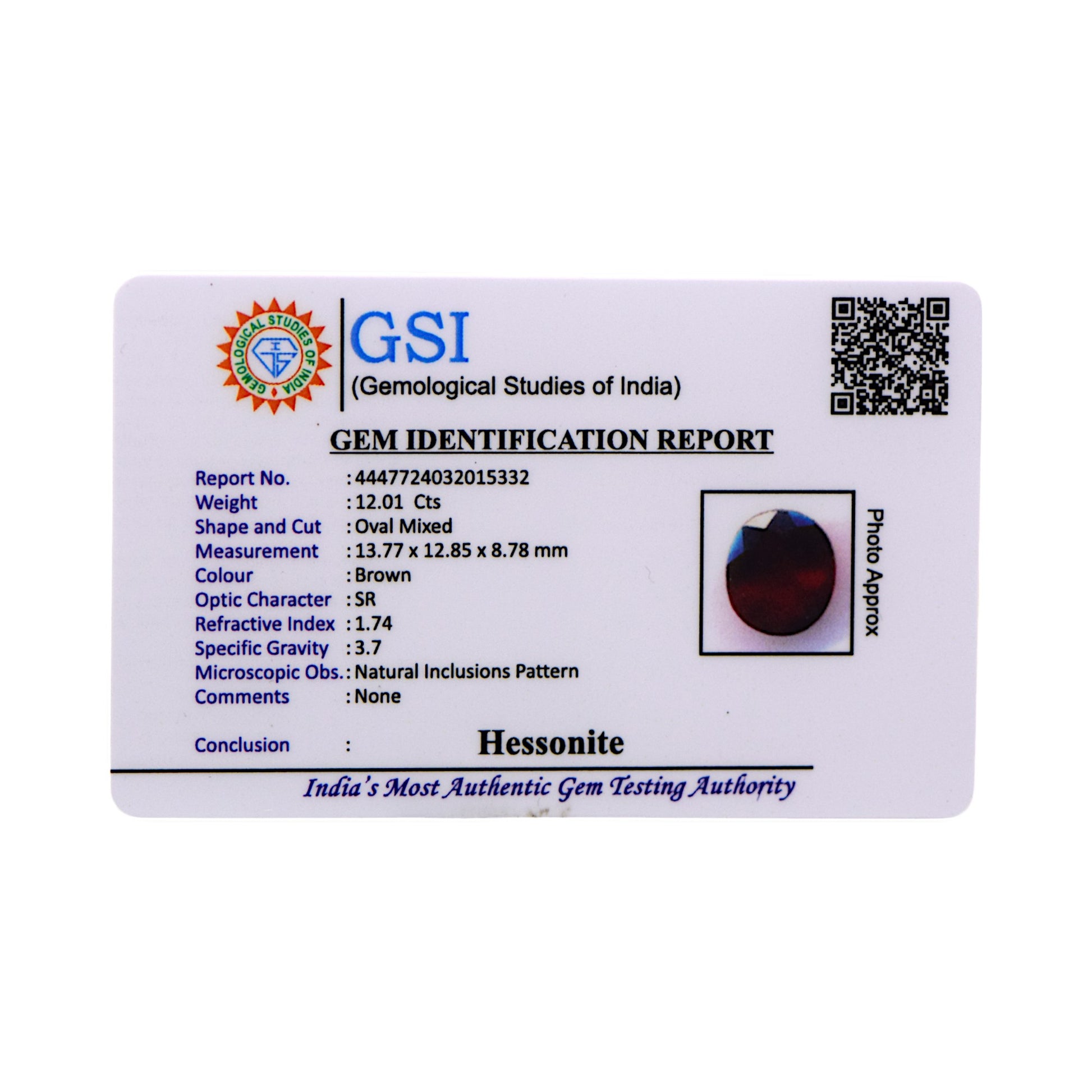 Certification: GSI Certified for Authenticity