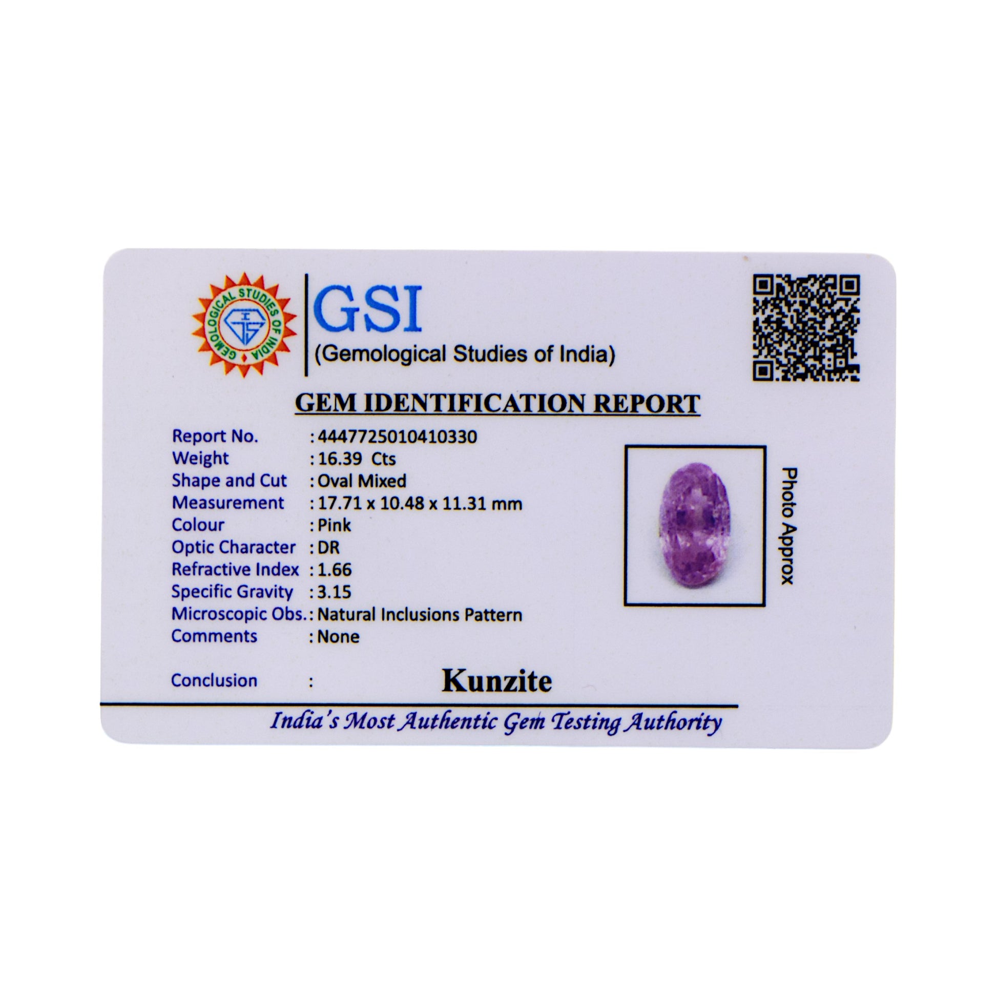 Certification: GSI Certified for Authenticity