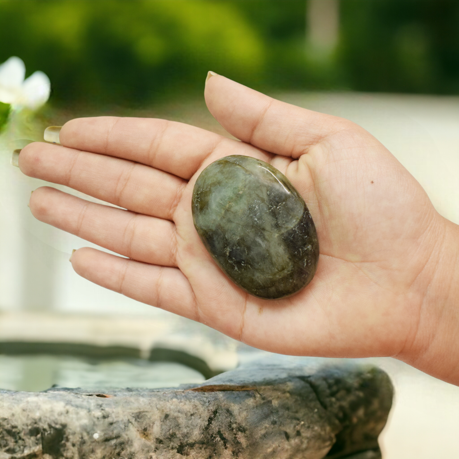 Natural Labradorite Healing Crystal palm Stone for Meditation (50-60 Gm)