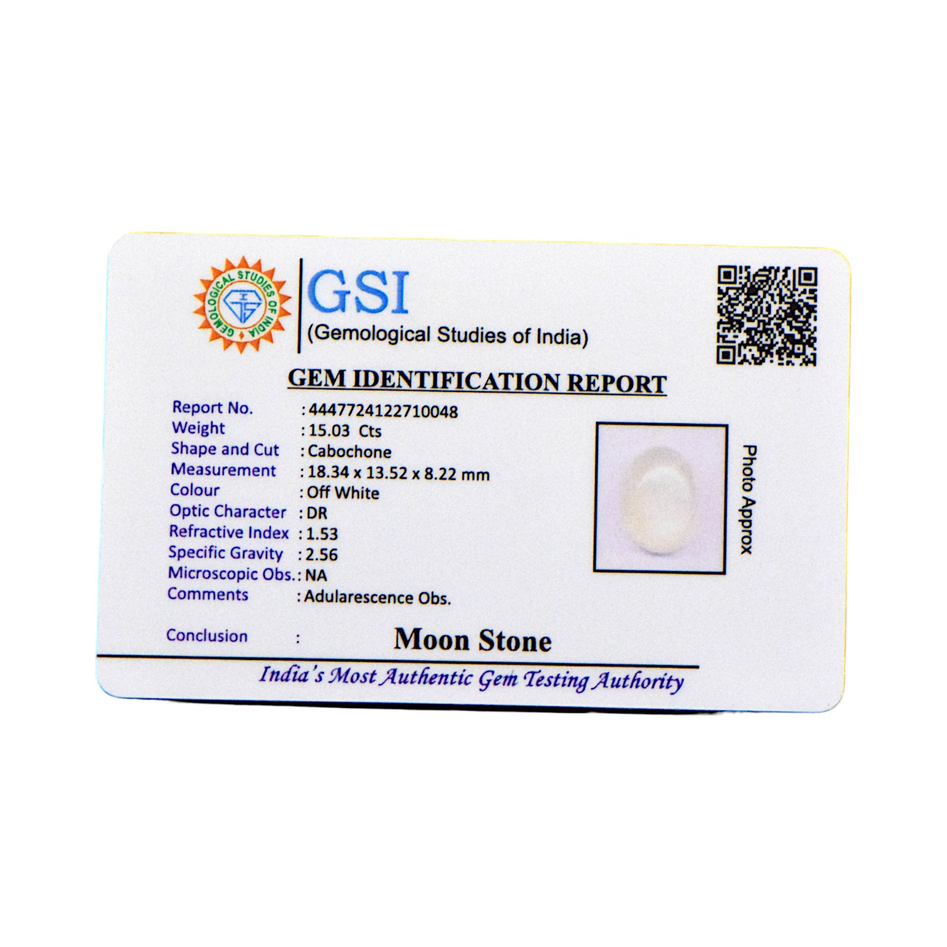 Certification: GSI Certified for Authenticity