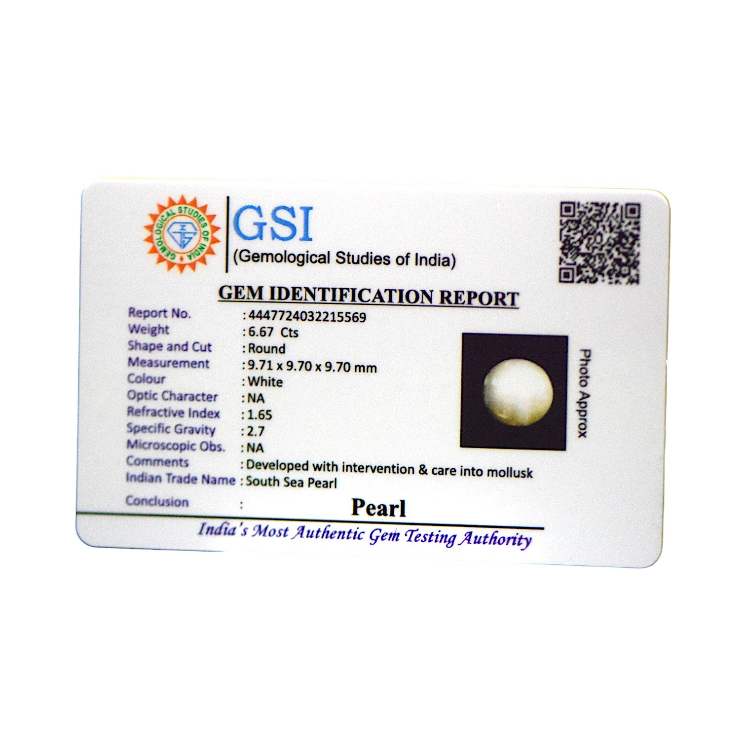 Certification: GSI Certified for Authenticity
