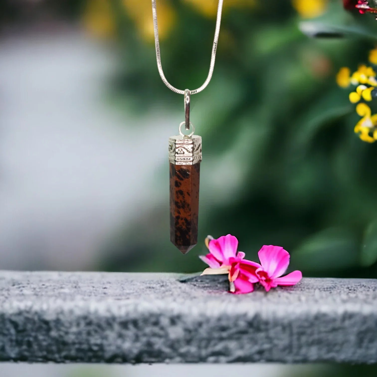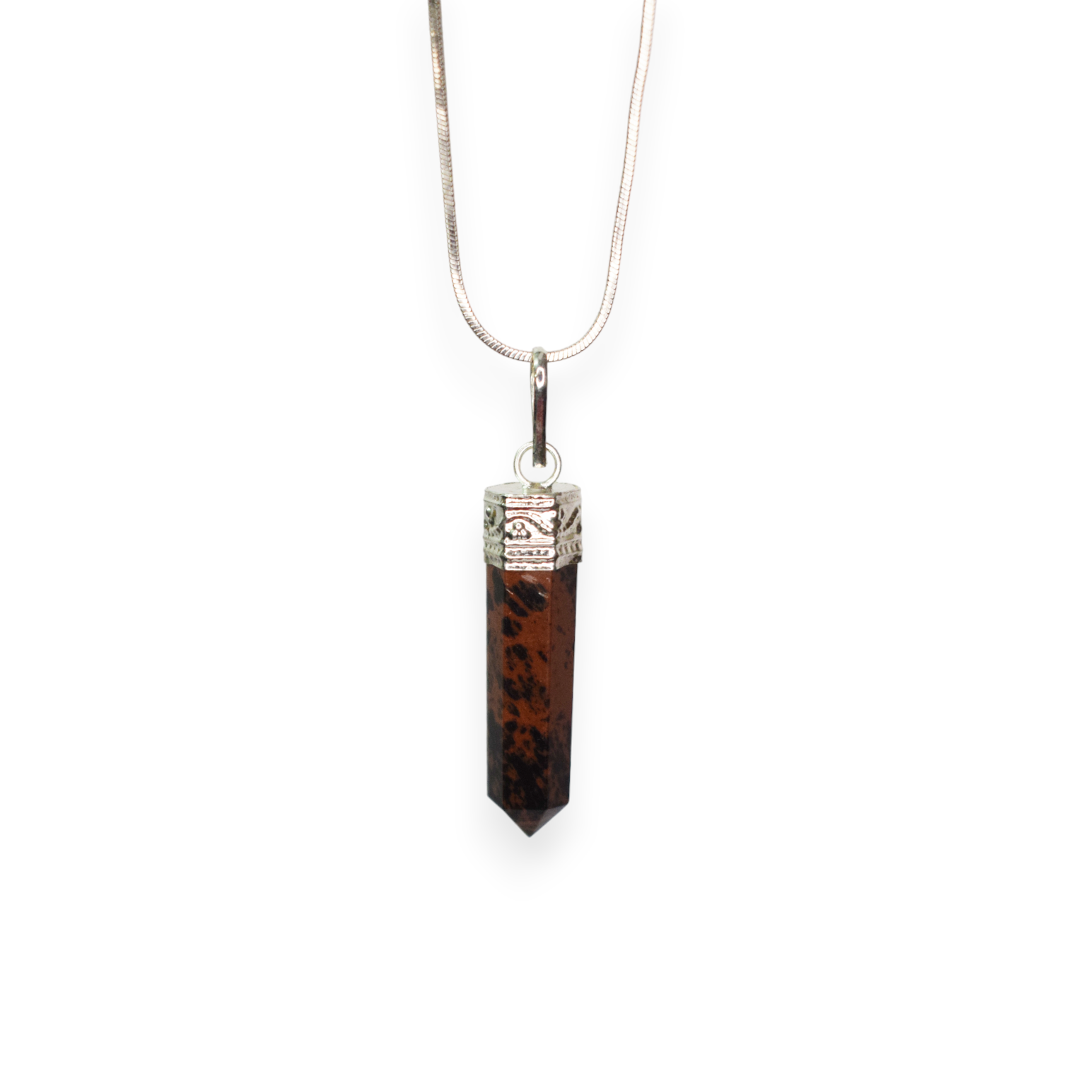 Mahogony Obsidian Bullet/Pencil Shape Crystal Stone Pendant Locket
