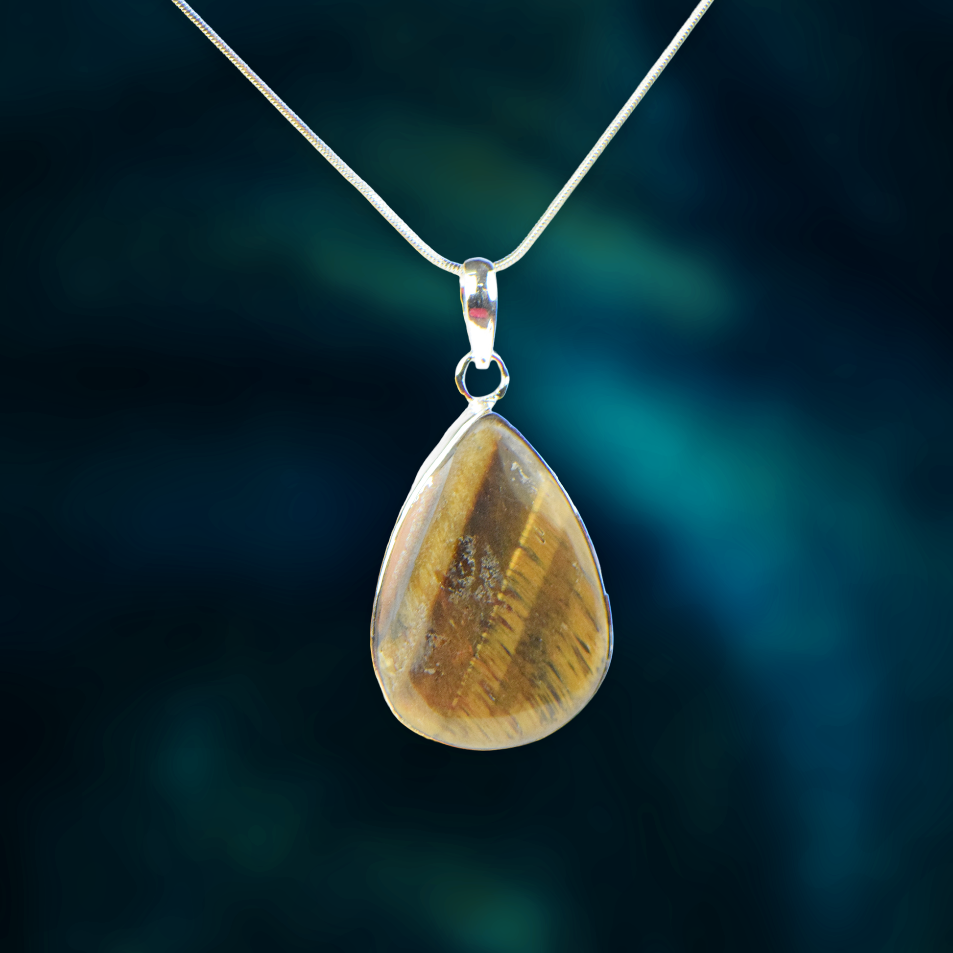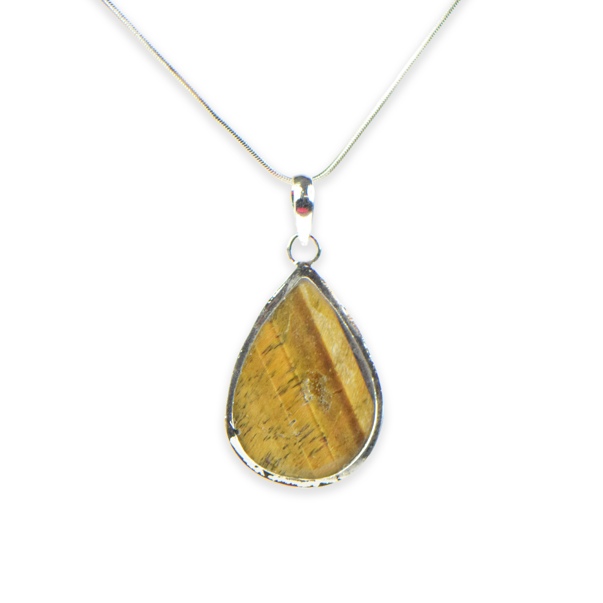 Tiger Eye Stone German Silver Pear Pendant With Chain