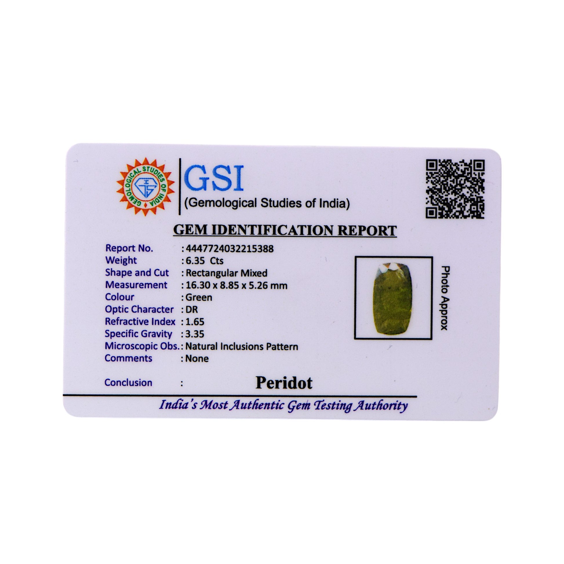 Certification: GSI Certified for Authenticity
