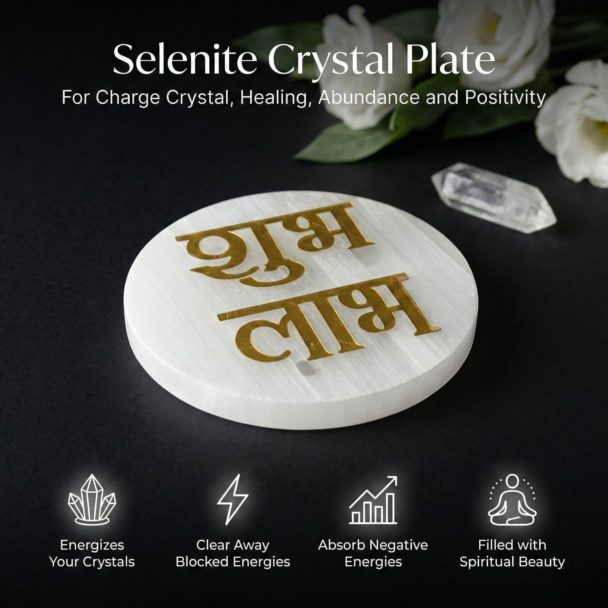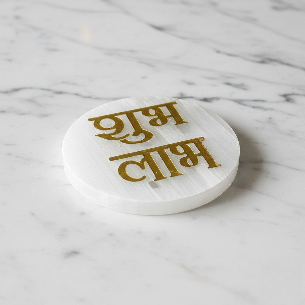 Shubh Labh selenite Golden Circle plate