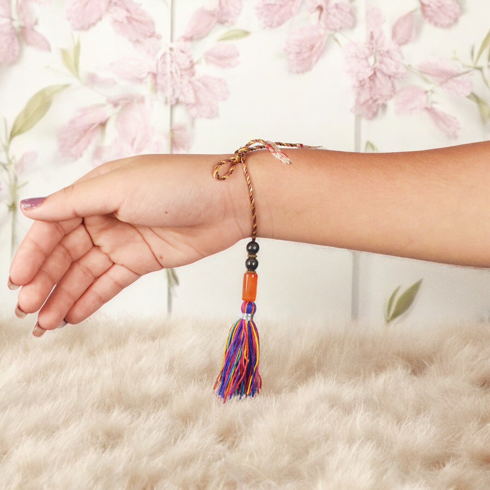 Crystals Lumba (Carnelian+Hematite) Lumba Rakhi For Bhabhi D No. L-02