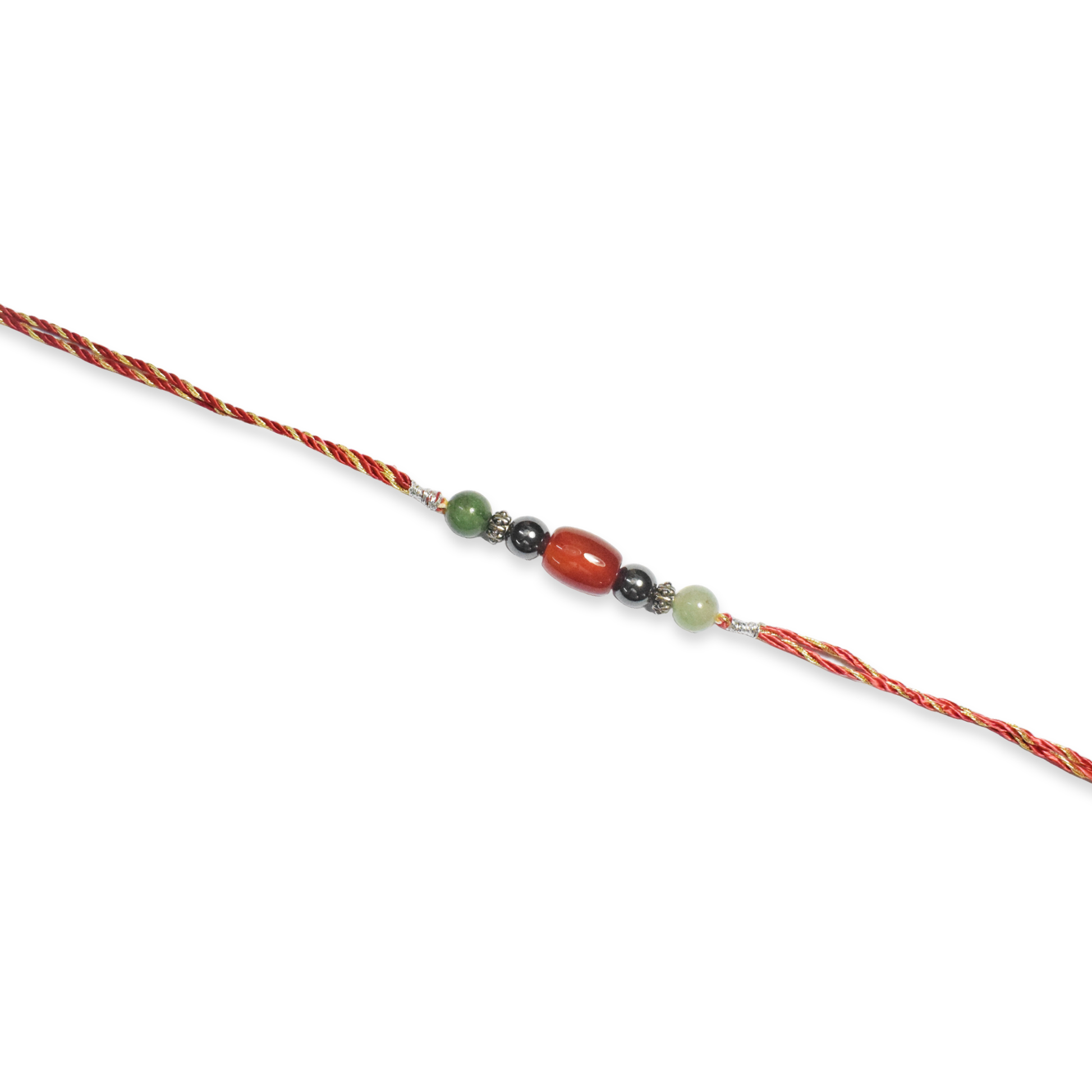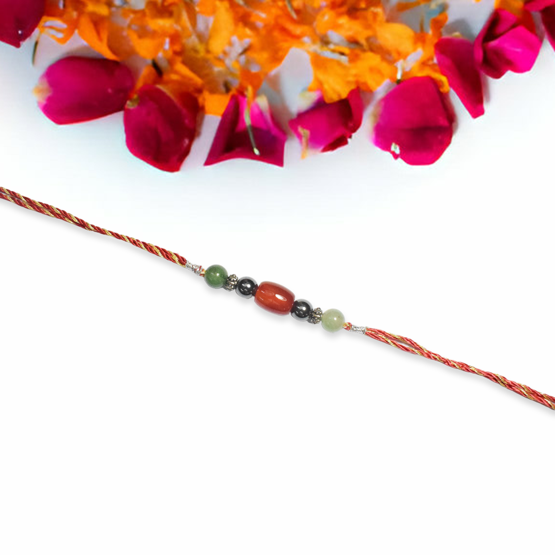 Crystals Rakhi For Stability, Happiness & Good Luck (Carnelian+Hematite+Aventurine) D No. R-01