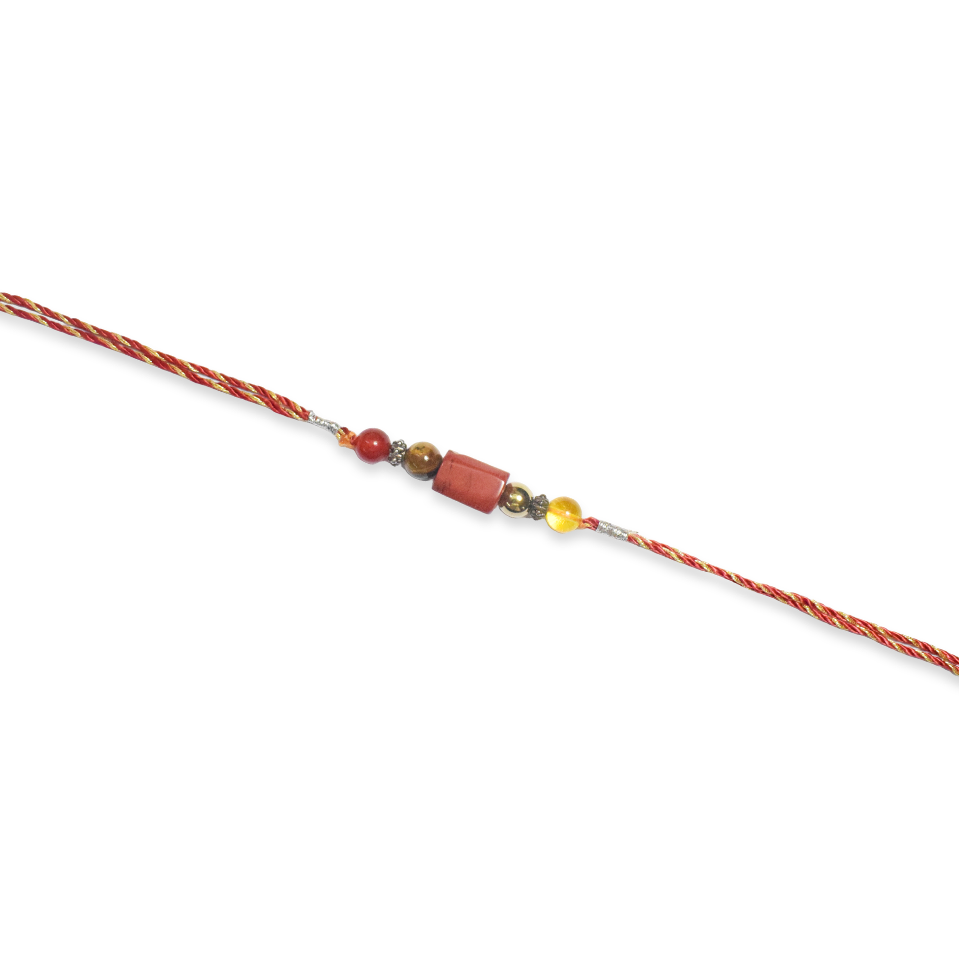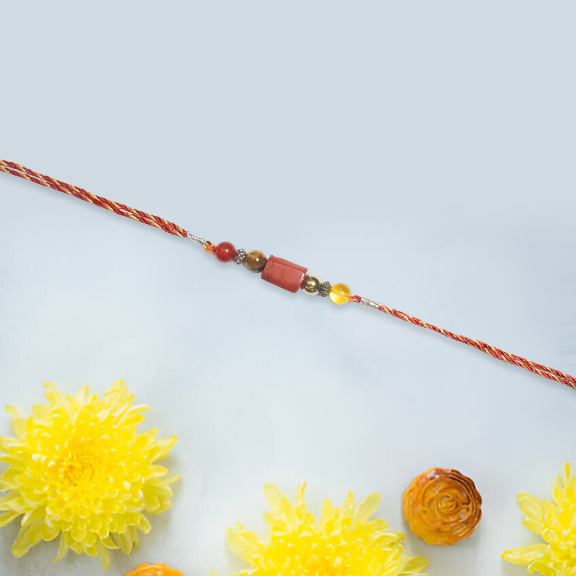 Crystals Rakhi For Prosperity & Stability ( Carnelian+ Tiger+ Jasper+ Pyrite+ Citrine ) D No. R-15