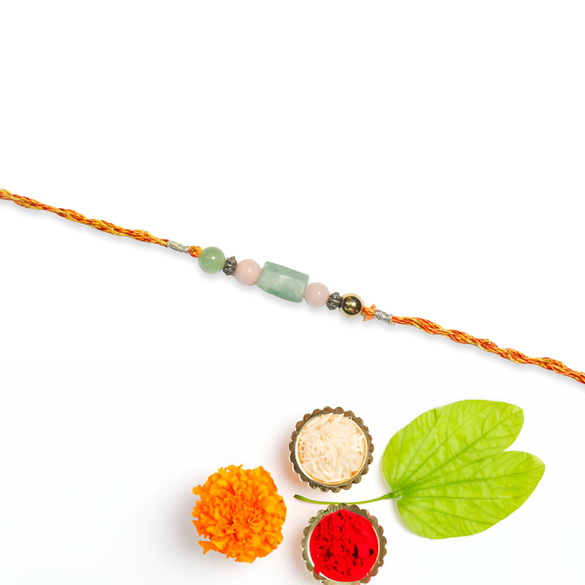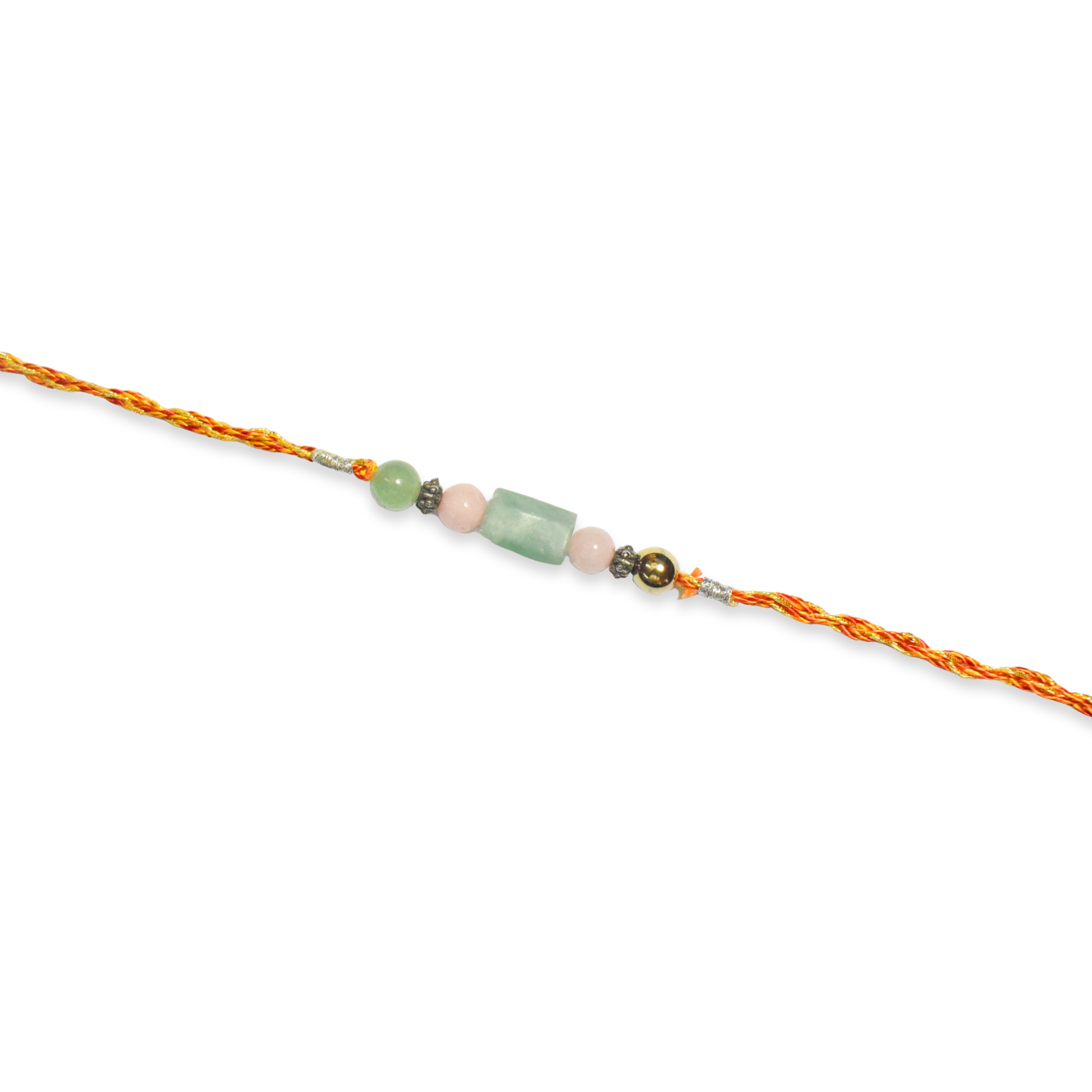 Crystals Rakhi For Bond b/w brother & sister ( Flourite+ Rose Quartz+ Aventurine ) D No. R-09