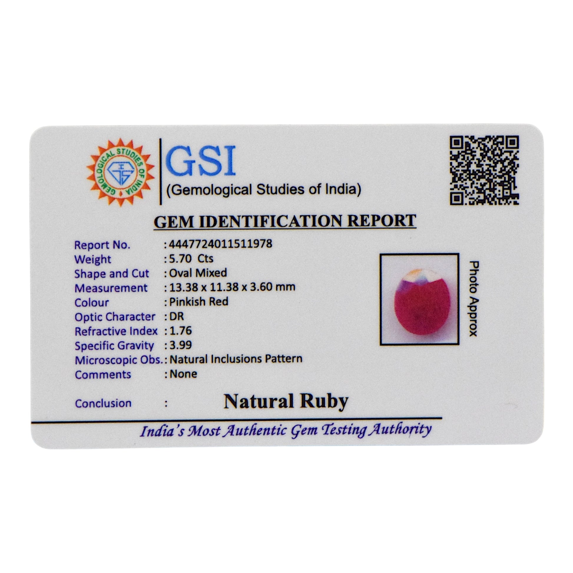 Certification: GSI Certified for Authenticity