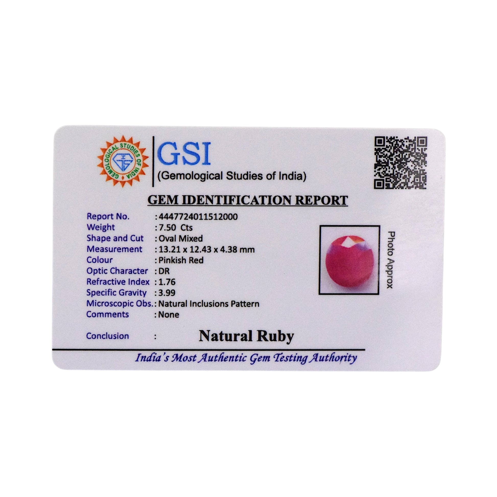 Certification: GSI Certified for Authenticity