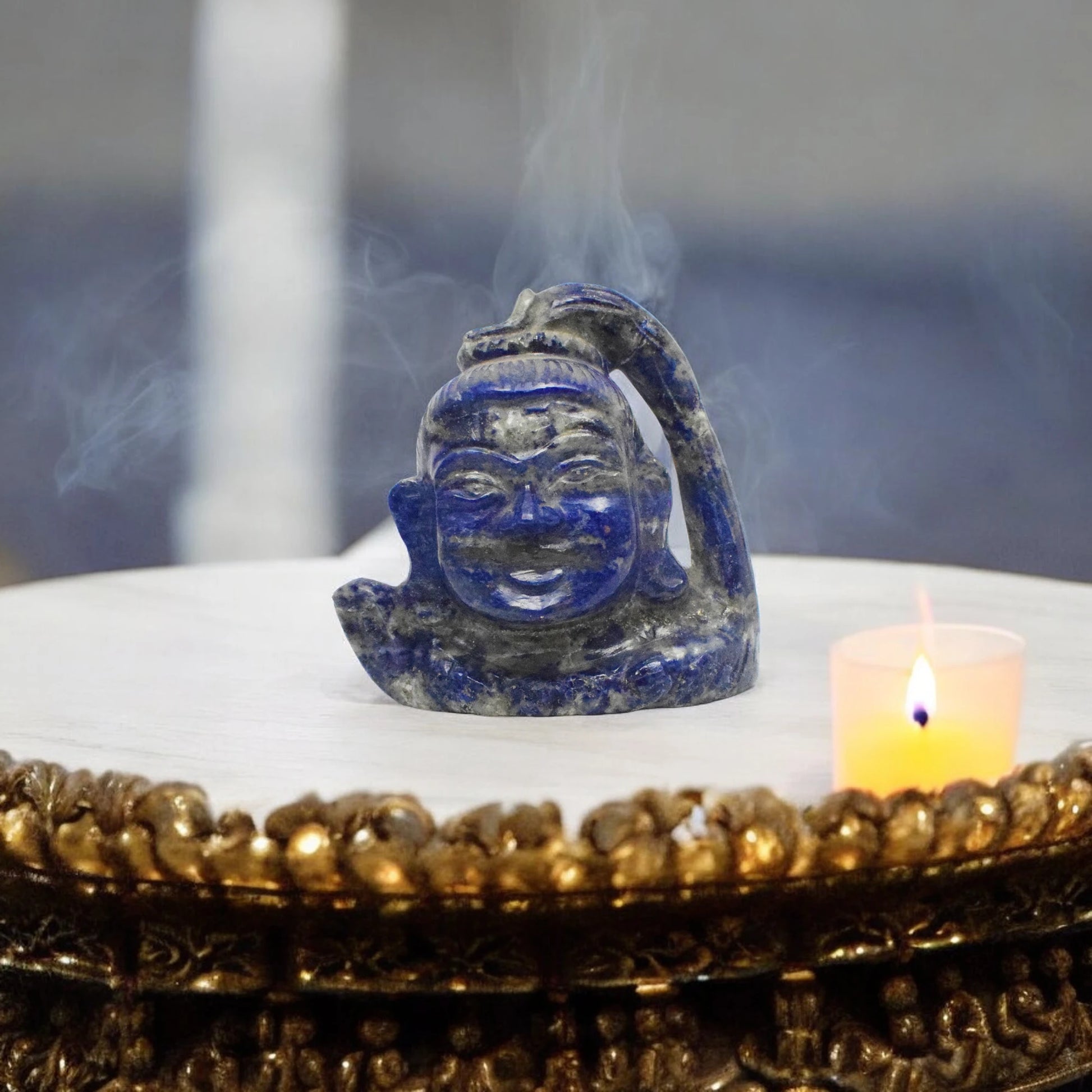 Decorative Appeal: The deep blue color of lapis lazuli and the detailed carving of Lord Shiva make this piece a visually striking addition to any home or office decor.