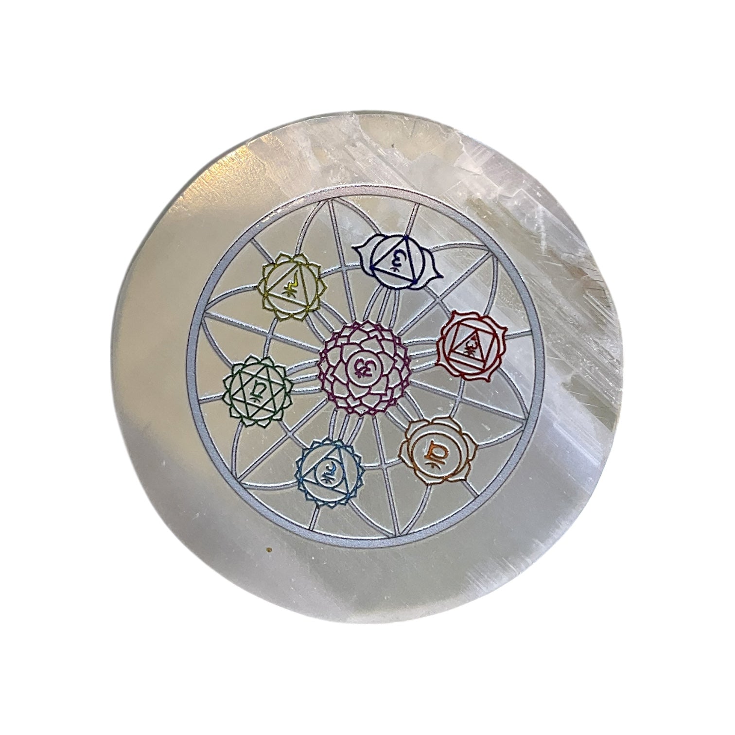 Bring soothing energy and elegant beauty into your space with this handcrafted Selenite Round Plate. Known as a powerful cleansing and charging crystal, Selenite helps to clear negative energies, recharge other crystals, and promote mental clarity.