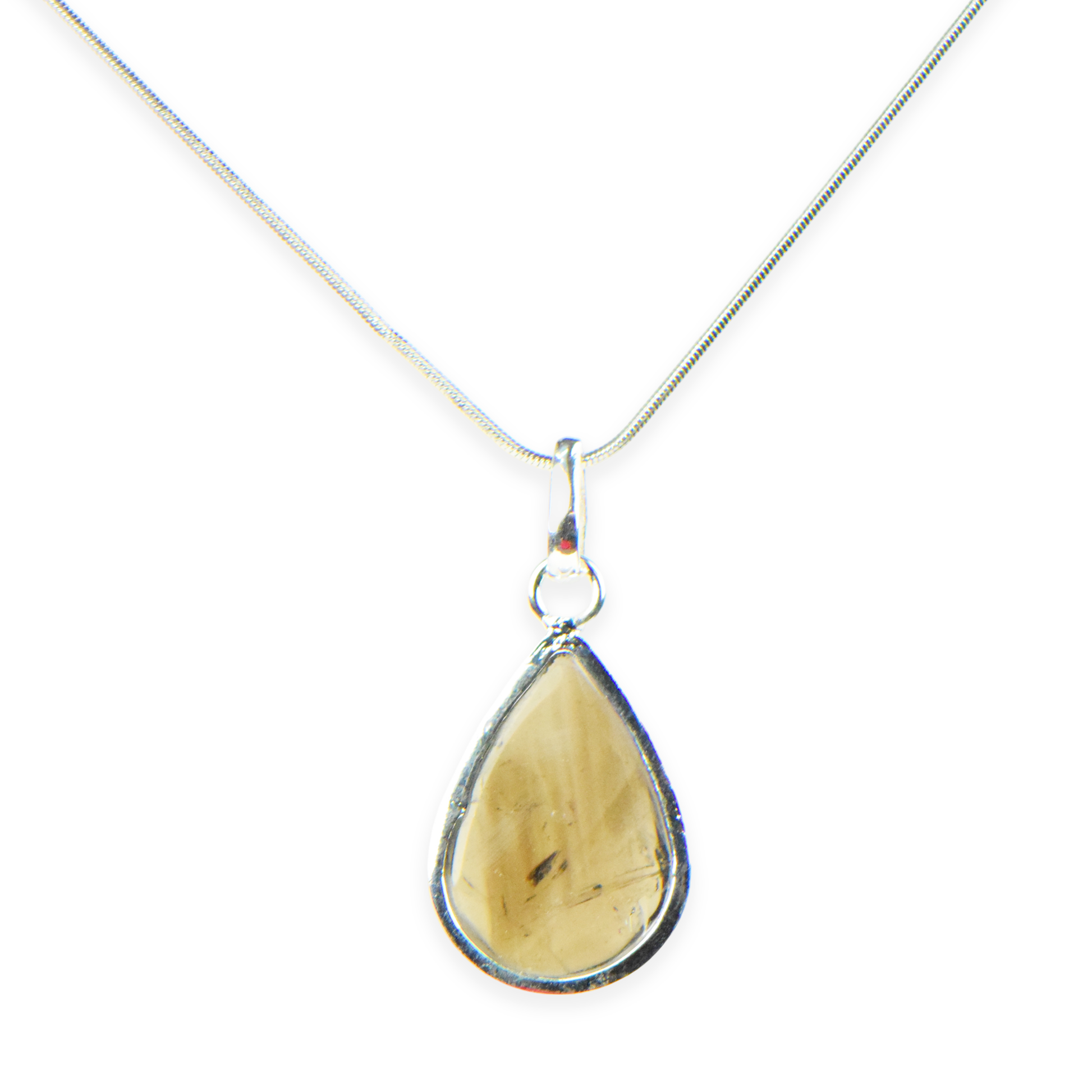 Smoky Quartz Stone German Silver Pear Pendant With Chain
