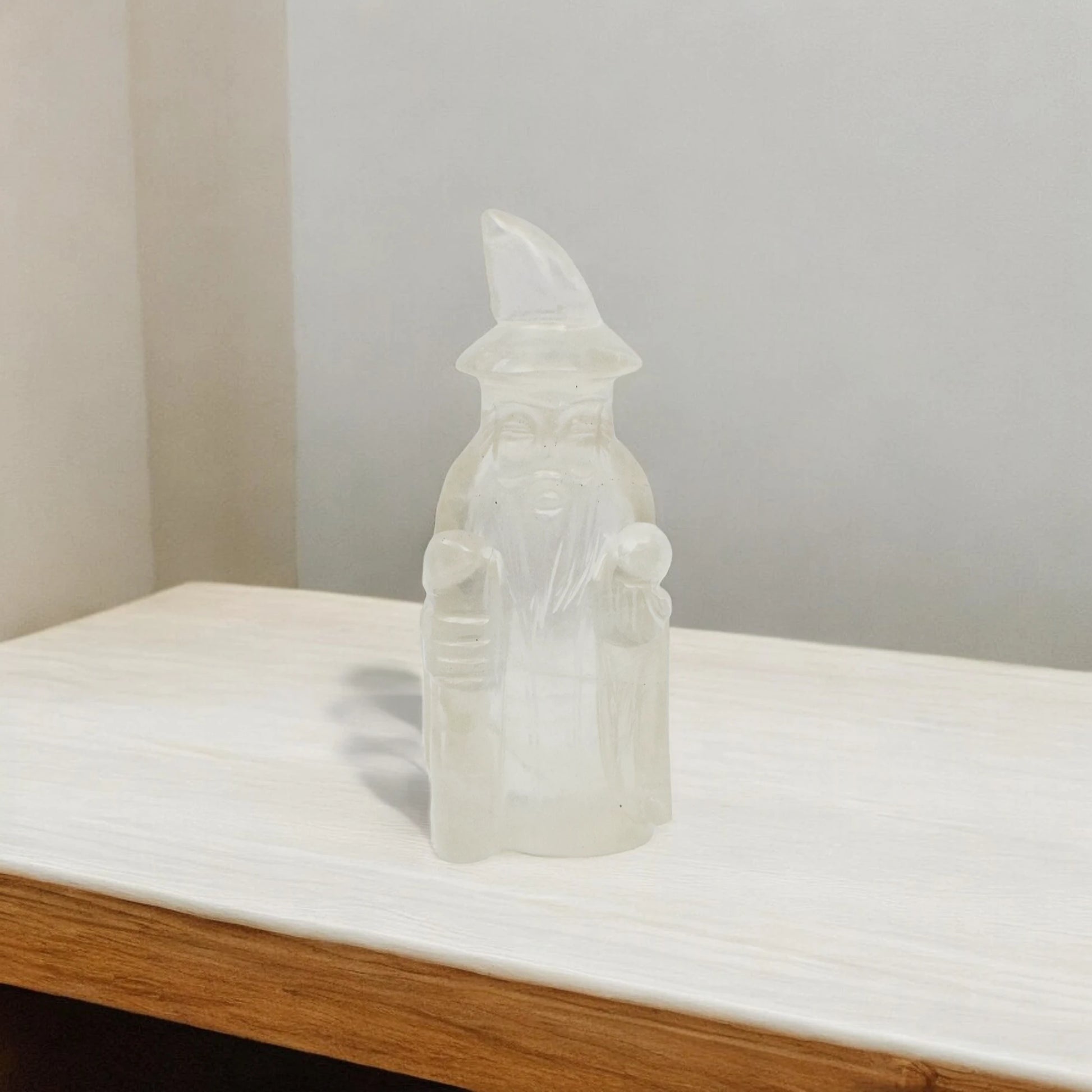 Clear Quartz Wizard Statue Figurine for Home Decoration - 10.16 cm