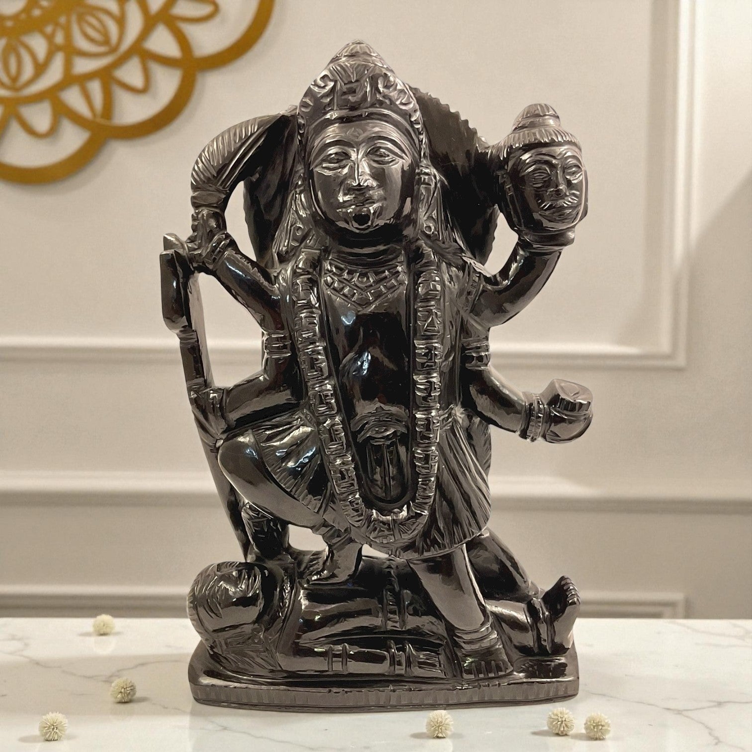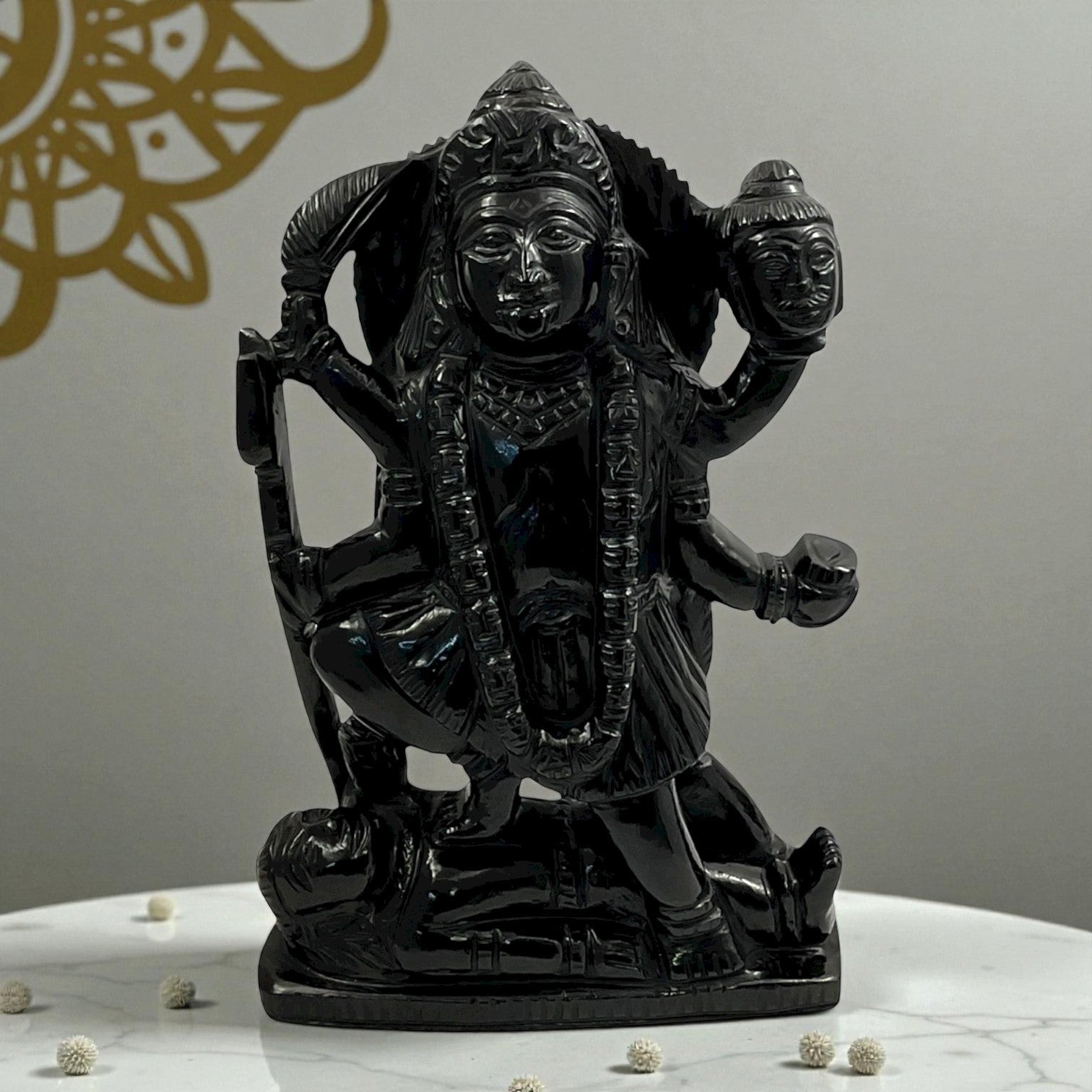 The Black Agate Kali Mata idol embodies the powerful energy of protection, transformation, and divine strength. Handcrafted from natural Black Agate, this sacred sculpture of Goddess Kali radiates fierce yet grounding vibrations. Known as a stone of protection and stability, Black Agate absorbs negative energies and restores inner balance — making this idol a perfect spiritual shield for your home or sacred space.