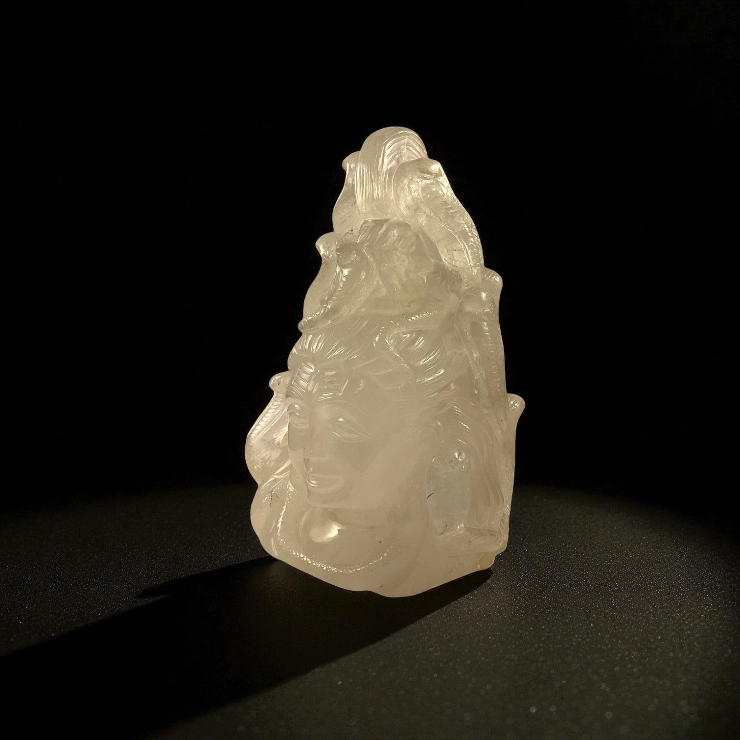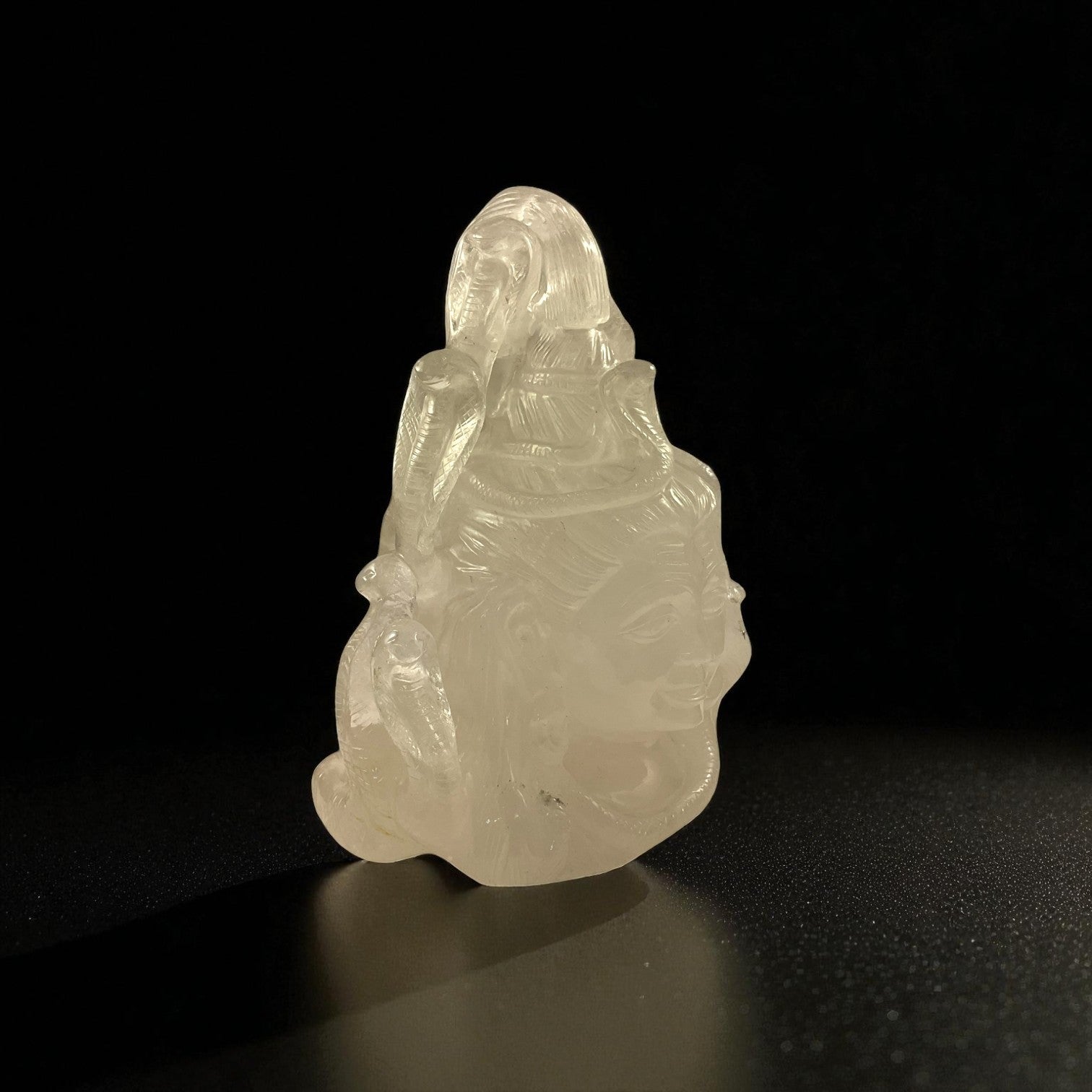 Invite divine grace and powerful spiritual vibrations into your space with this magnificent Clear Quartz Shiva Idol, intricately hand-carved from a single block of natural Clear Quartz (Sphatik). Representing Lord Shiva – the symbol of cosmic energy, meditation, and transformation – this stunning piece radiates purity and positive energy. Its luminous clarity reflects divine light, making it a perfect centerpiece for temples, meditation rooms, or sacred spaces.