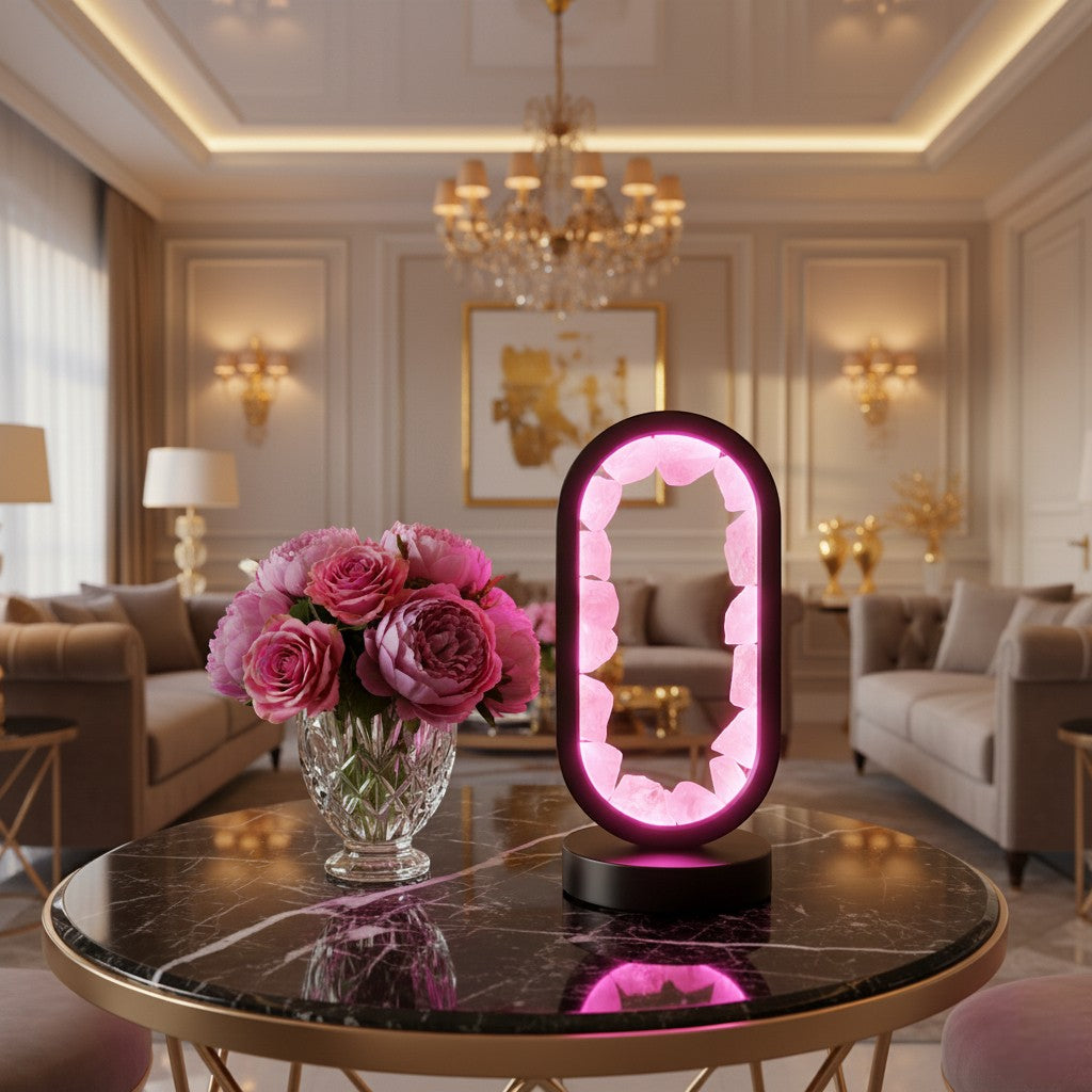 Rose Quartz Crystal LED Lamp