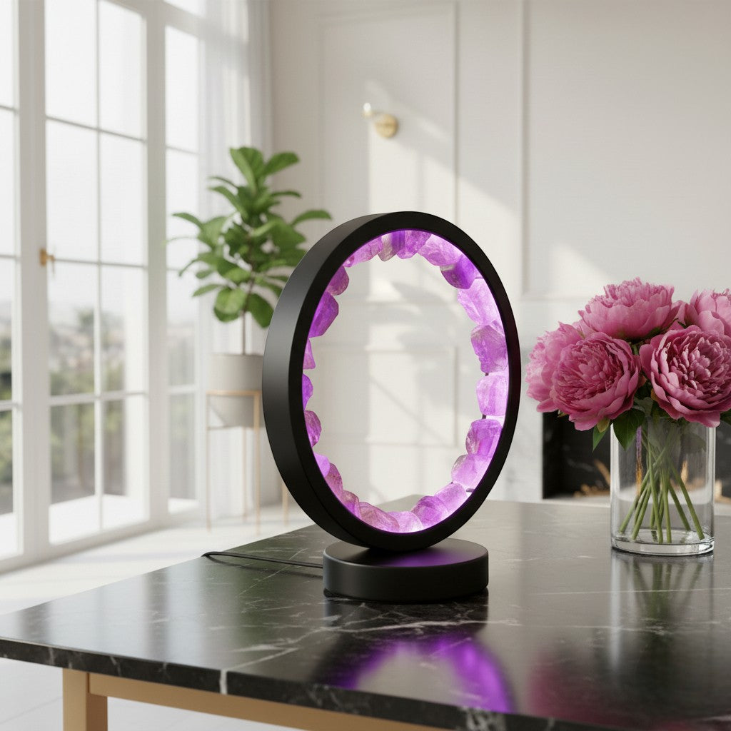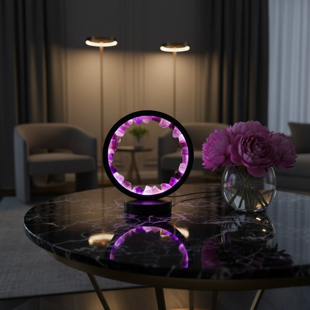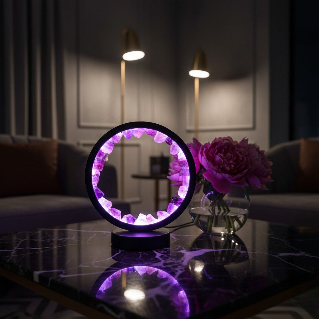 Ideal for bedrooms, meditation rooms, or luxury home décor, the gentle LED illumination enhances the crystal’s rich violet tones, creating a warm and relaxing ambiance.