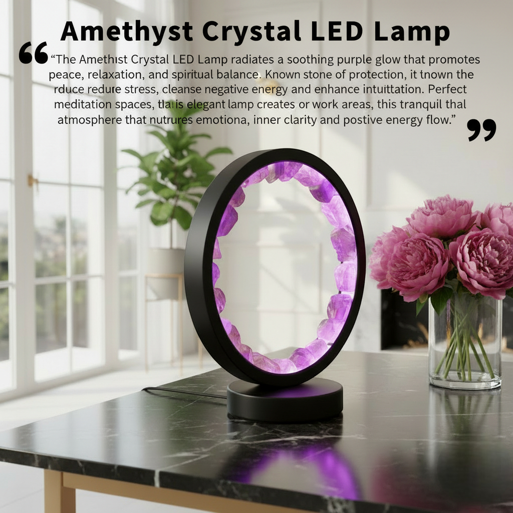 Elevate your space with the serene glow of this exquisite Amethyst Crystal Lamp. Handcrafted from 100% natural Amethyst stone, this lamp radiates a soft, calming light that promotes peace, balance, and spiritual awakening. Its smooth round design symbolizes unity and wholeness — a perfect harmony of elegance and healing energy.