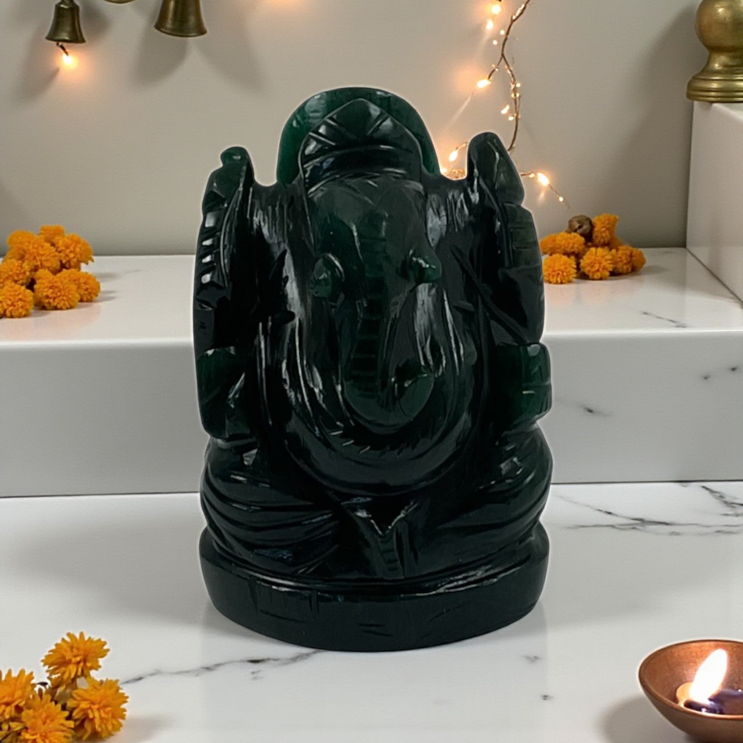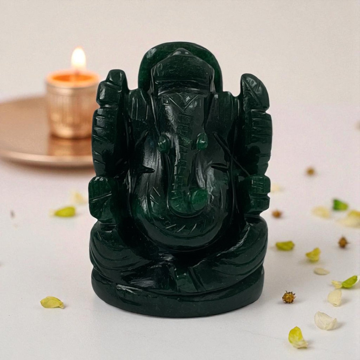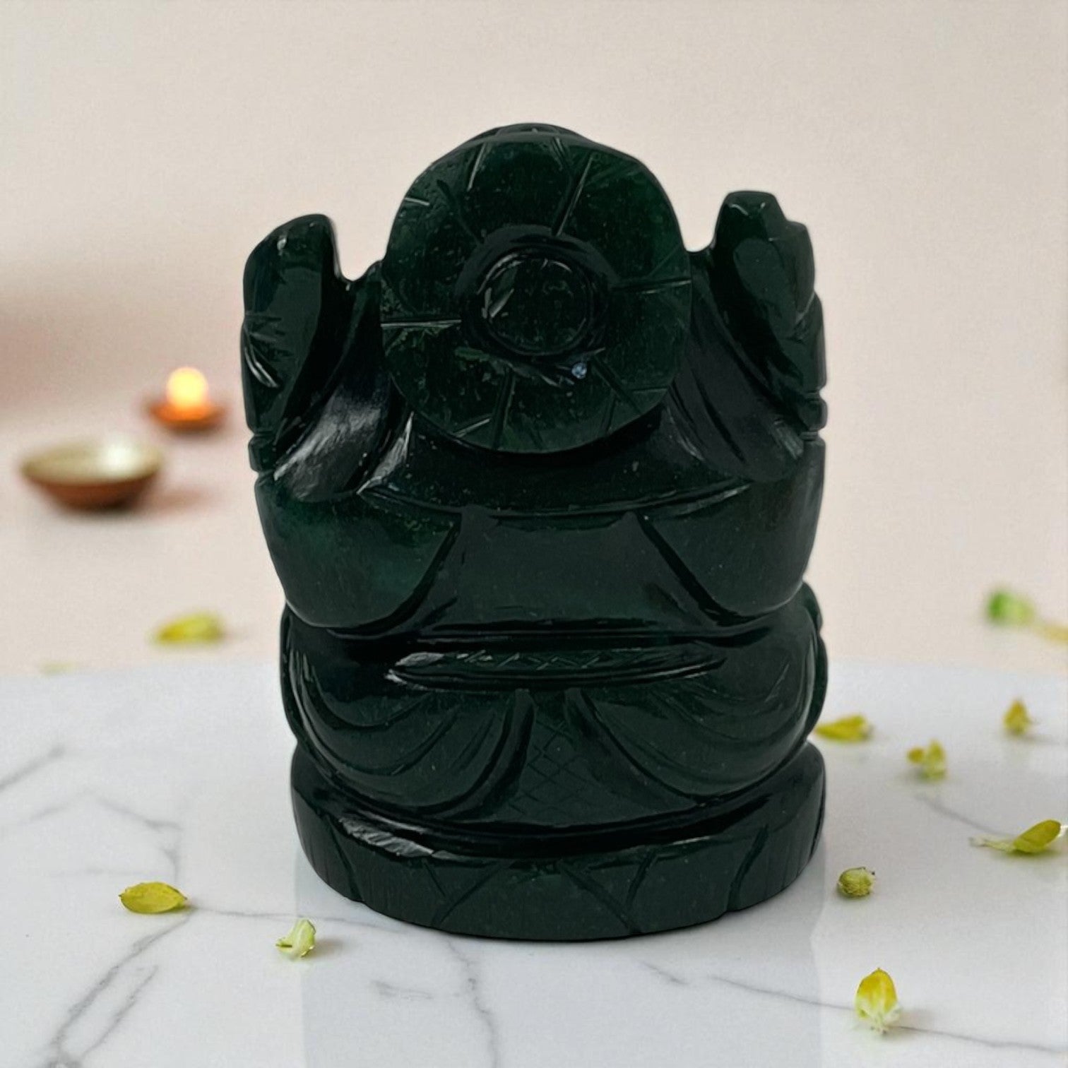 Green Aventurine (Dark ) Crystal Ganesha for Positivity