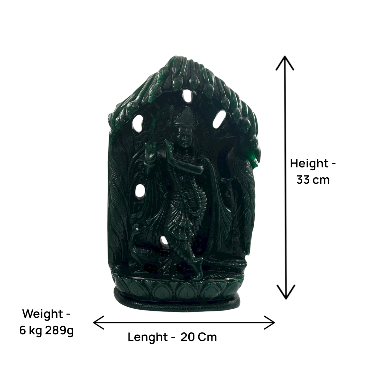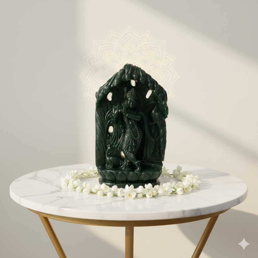 The Green Aventurine Krishna idol embodies divine love, prosperity, and emotional harmony. Beautifully hand-carved from natural Green Aventurine stone, this serene depiction of Lord Krishna radiates calming and abundant energy. Known as the “Stone of Opportunity,” Green Aventurine attracts luck, success, and spiritual growth — making this idol perfect for home temples, meditation spaces, or elegant décor.