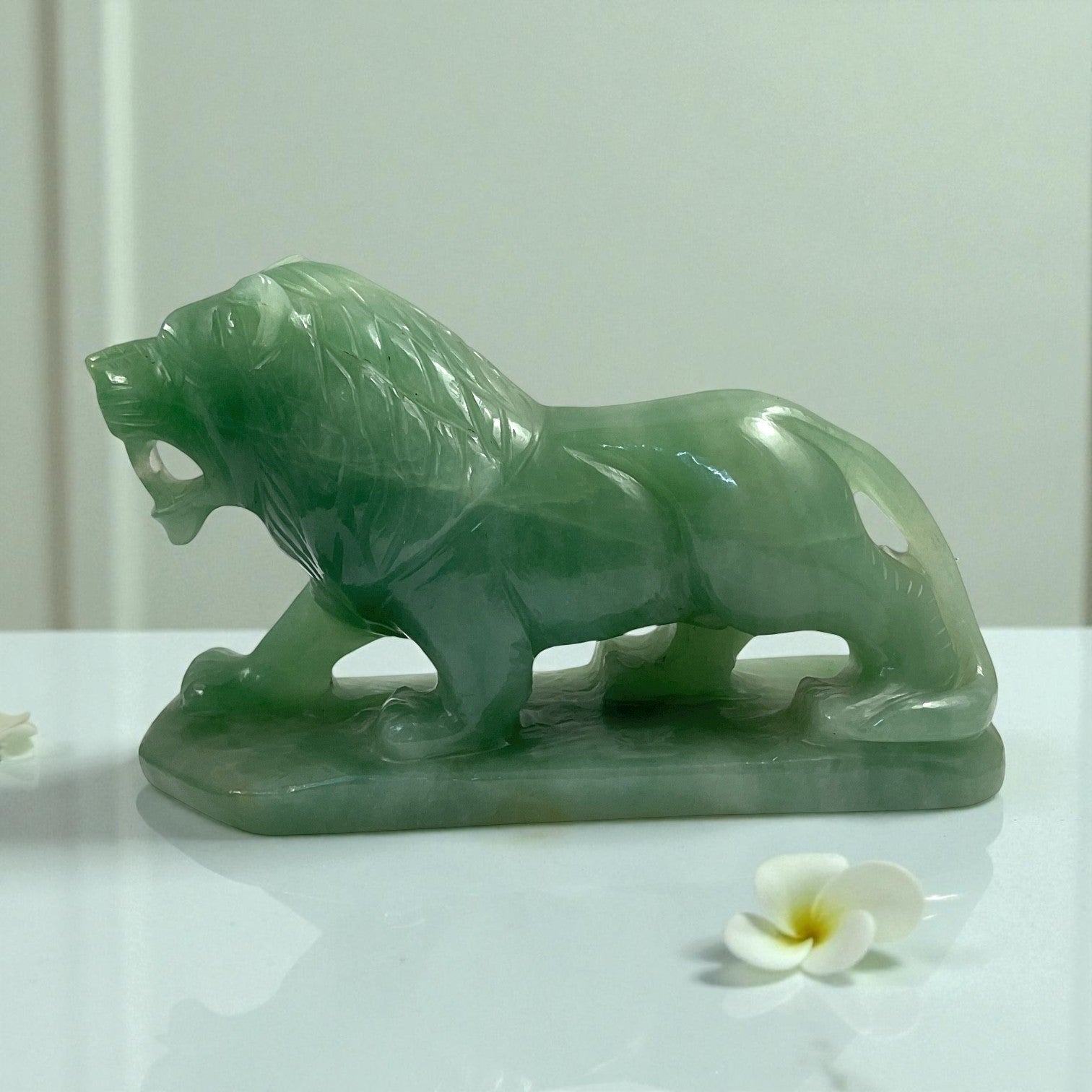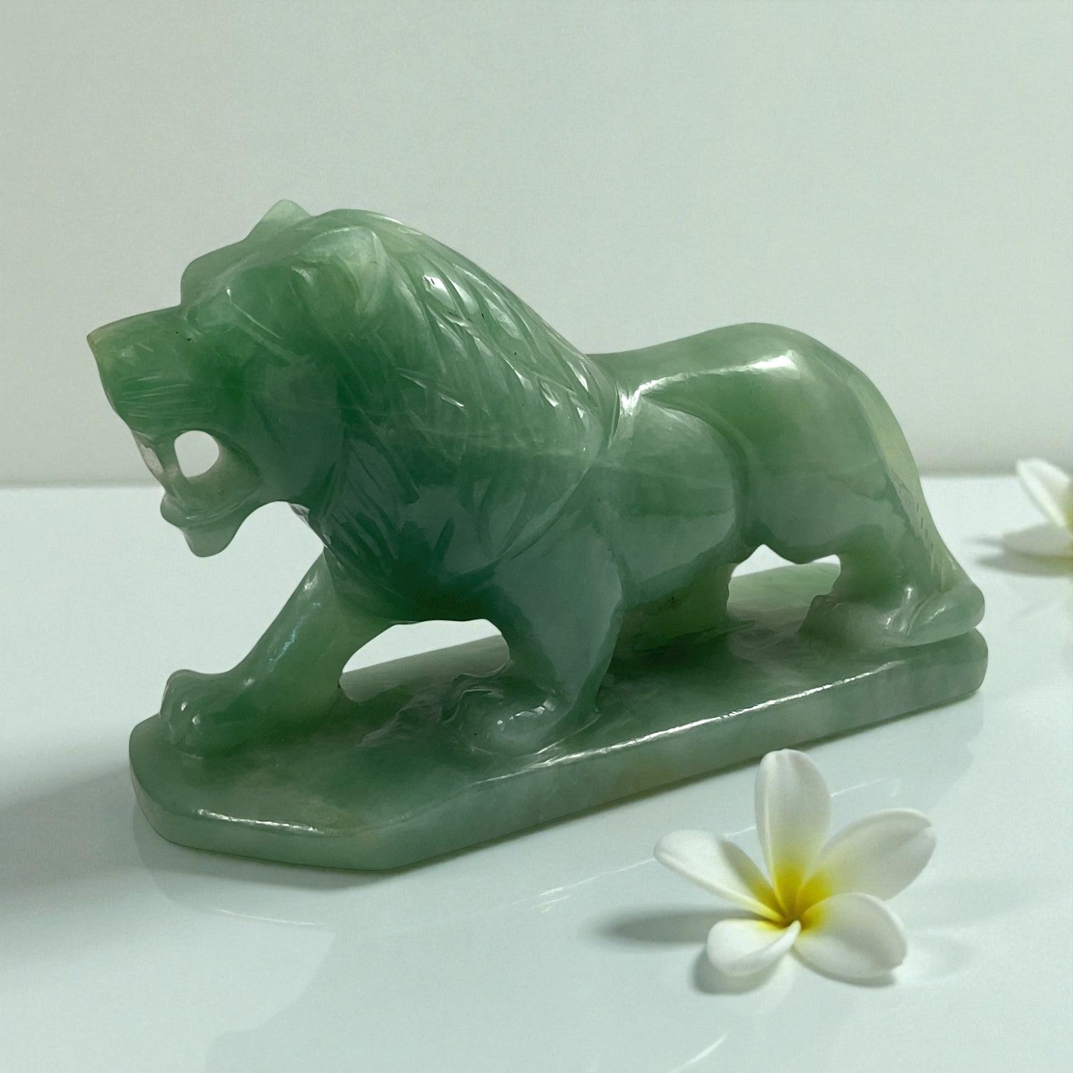 Radiate confidence, courage, and good fortune with this magnificent Green Aventurine Lion, exquisitely hand-carved from natural green aventurine stone. Known as the Stone of Opportunity and Growth, Green Aventurine promotes optimism, vitality, and inner strength—empowering you to overcome challenges with calm determination.