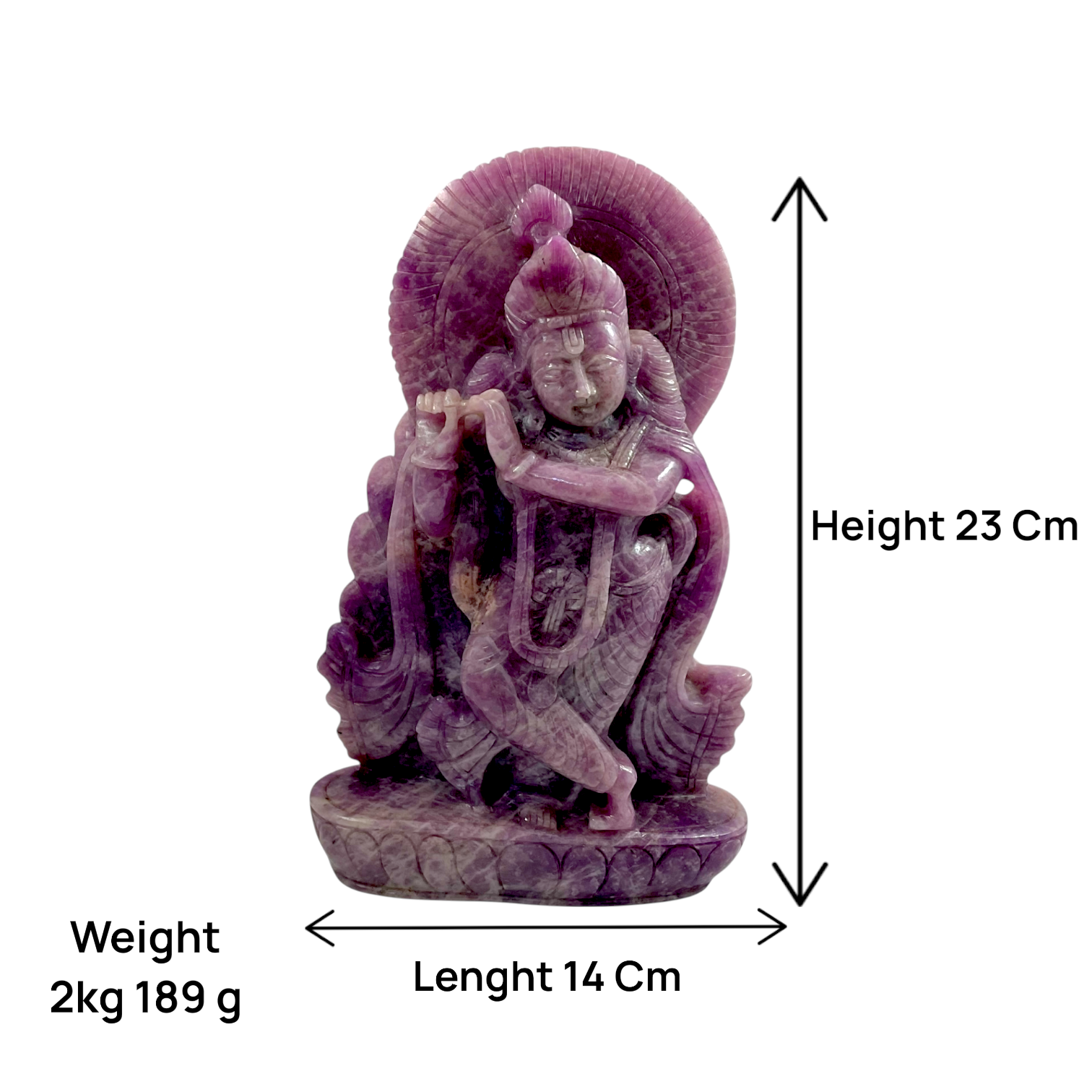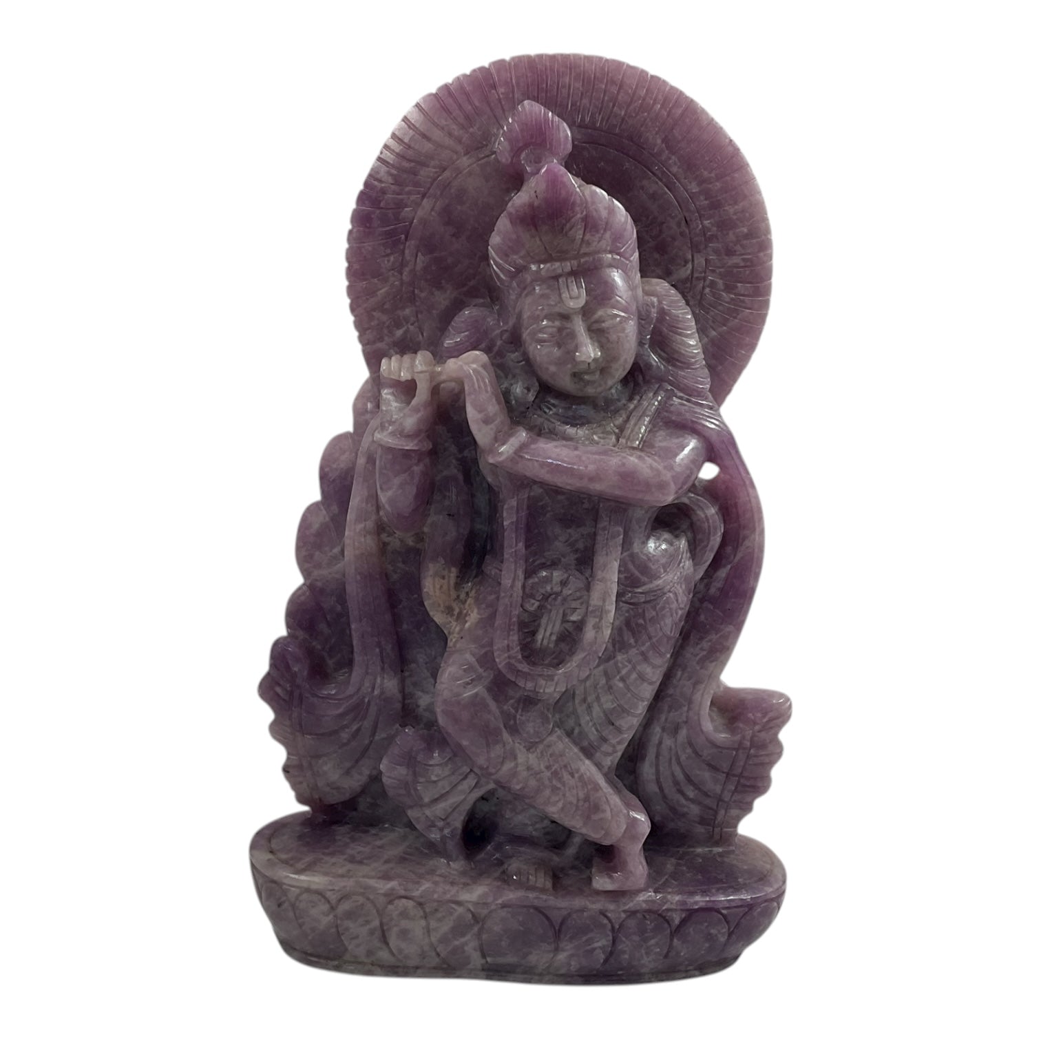 The Lepidolite Krishna idol radiates peace, love, and divine serenity. Beautifully hand-carved from natural Lepidolite stone, known as the Stone of Calm and Transition, this elegant sculpture of Lord Krishna brings soothing and healing vibrations. It helps in emotional balance, stress relief, and spiritual growth — making it a perfect piece for meditation rooms, home temples, or elegant décor spaces.