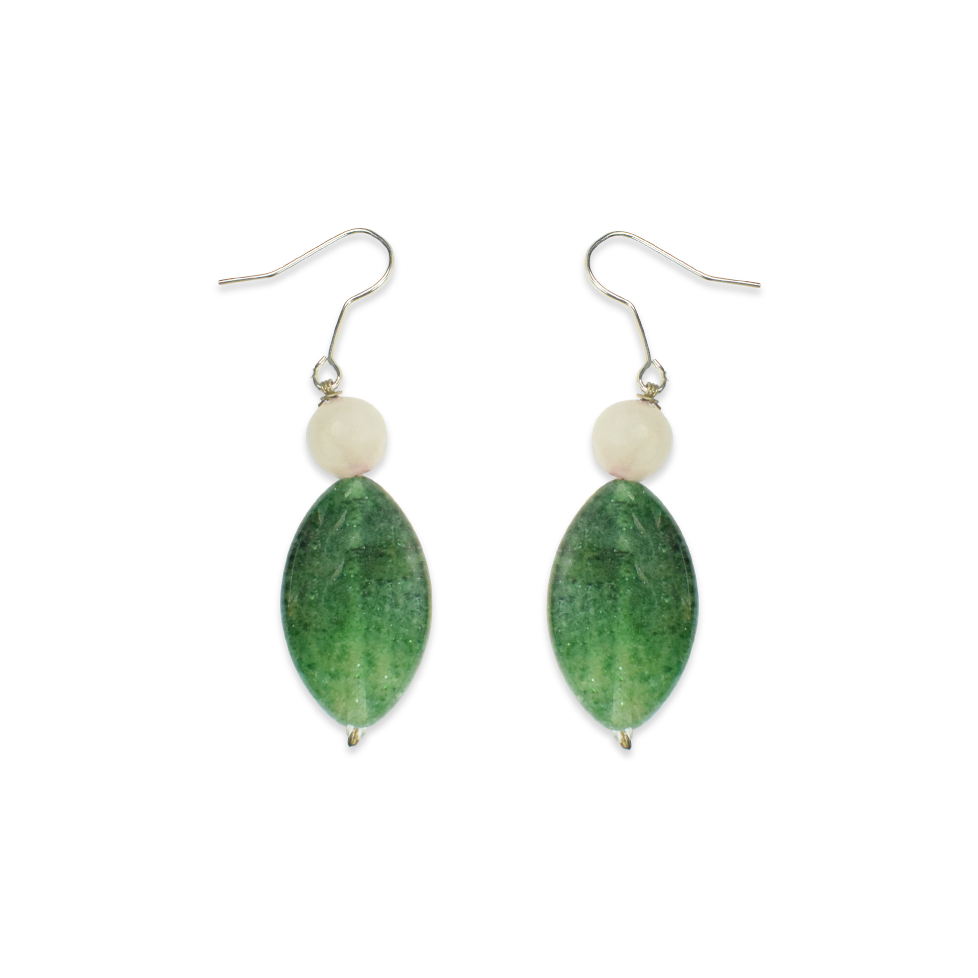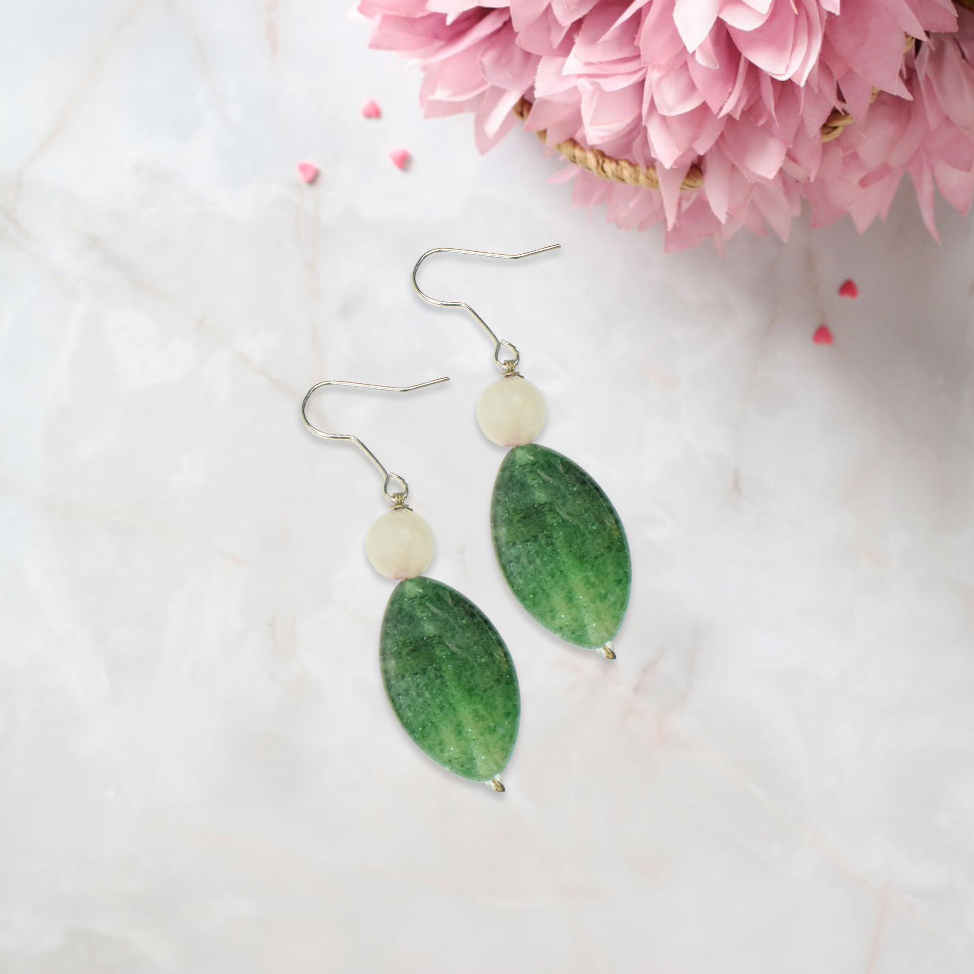 Rose Quartz & Green Aventurine Drop Dangle Earrings